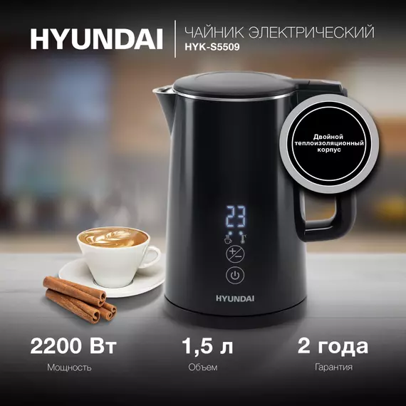 Чайник Hyundai HYK-S5509 1.5л. 2200Вт черный корпус: металл/пластик