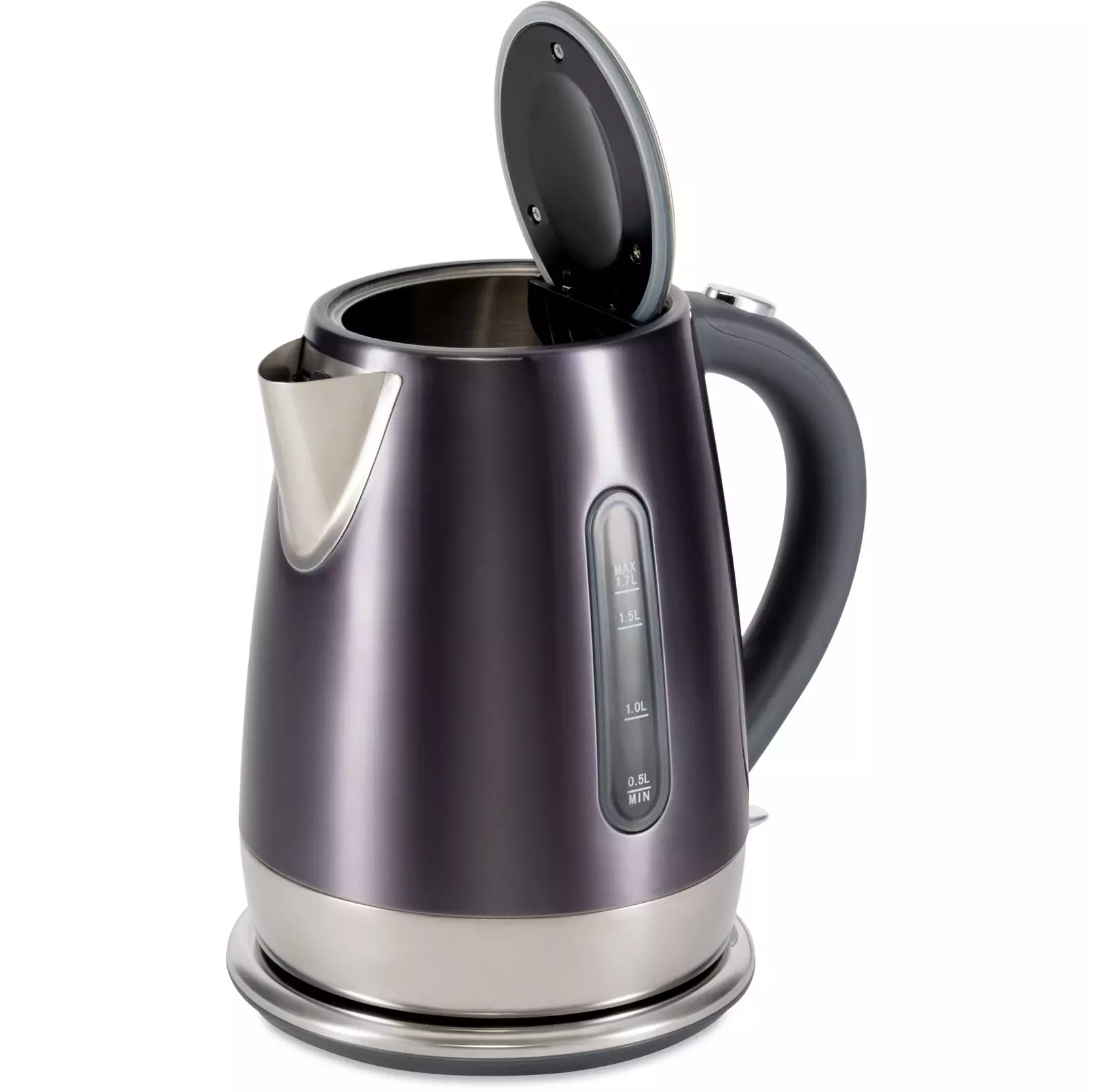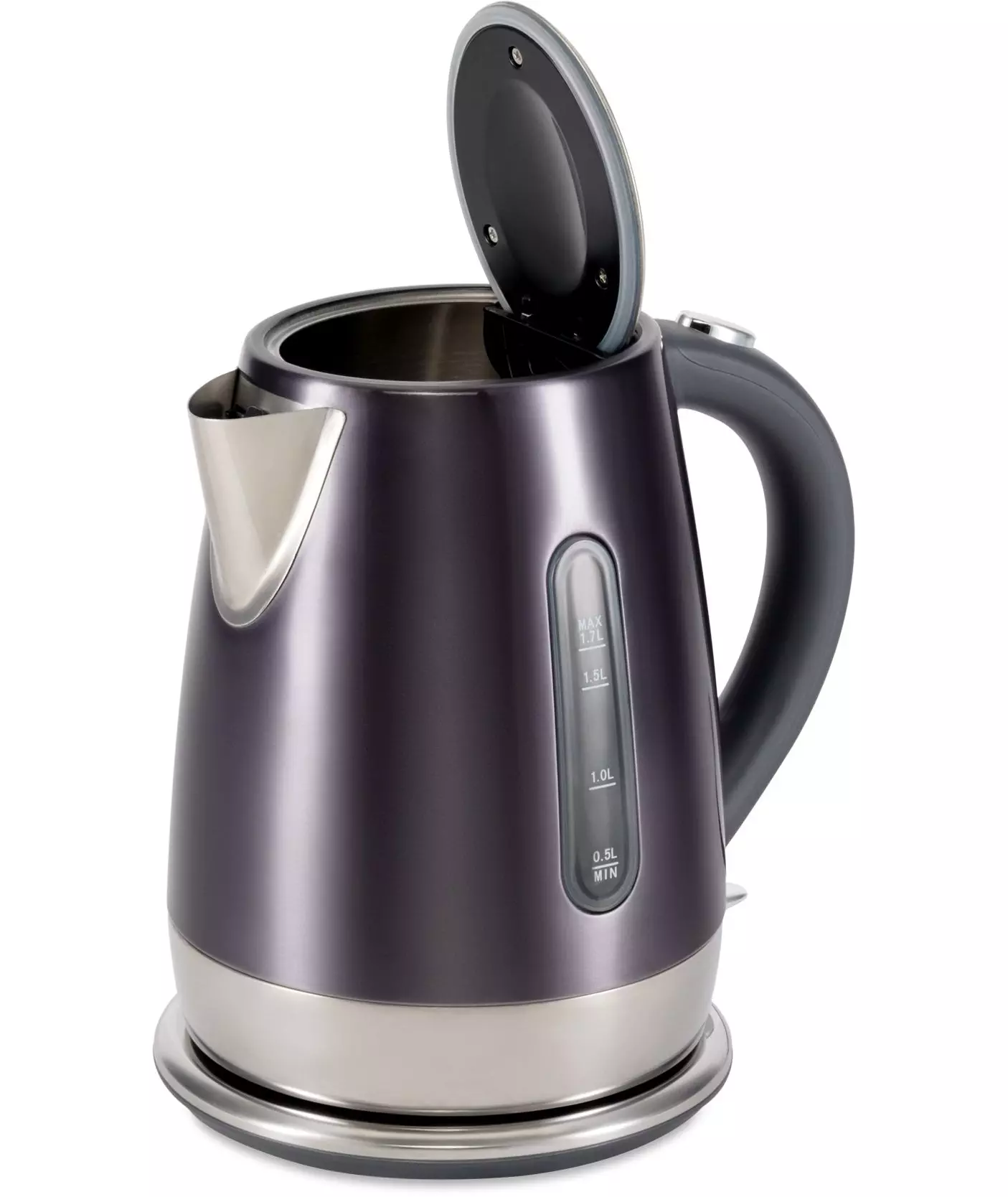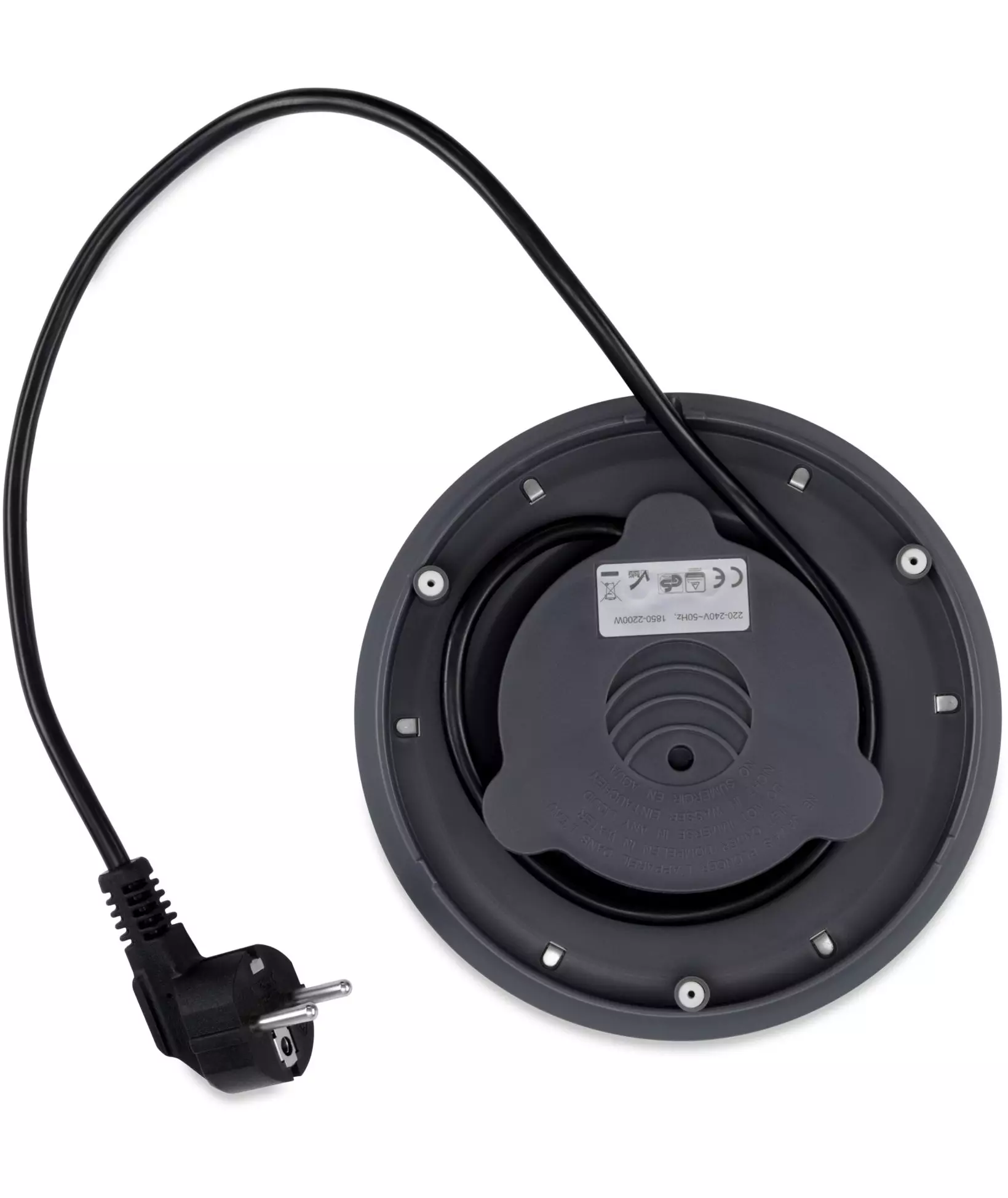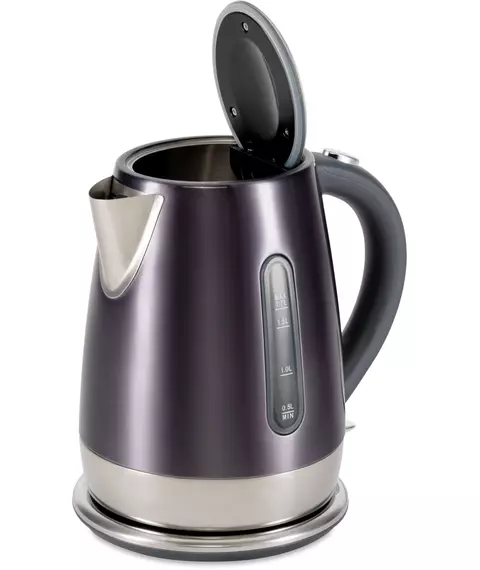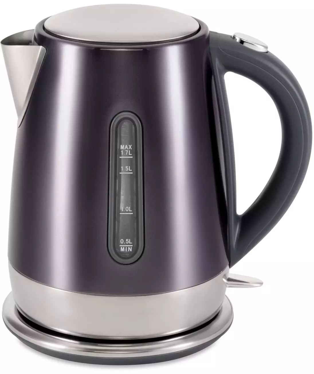 Стильный металлически чайник в трендовом графитовом цвете. Качественная сборка, эргономичная форма, хромированные элементы, делают из чайники стильный и полезный аксессуар на кухне.
