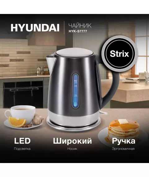 Чайник Hyundai HYK-S7777 1.7л. 2200Вт графит/серебристый корпус: металл