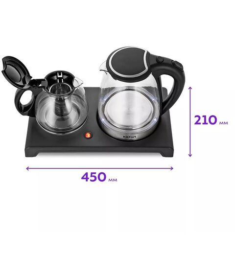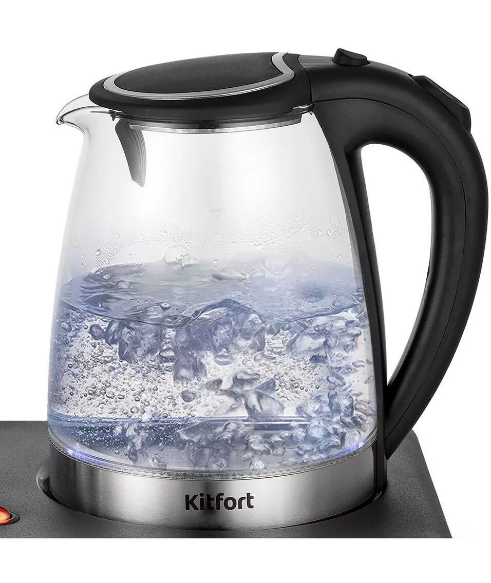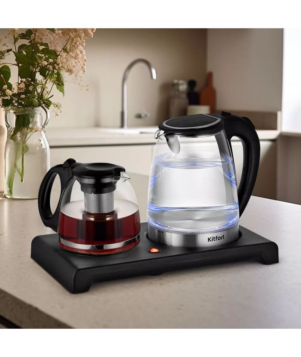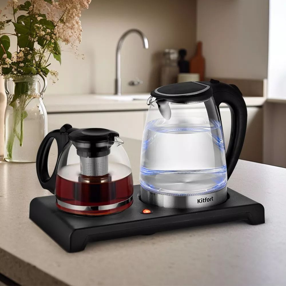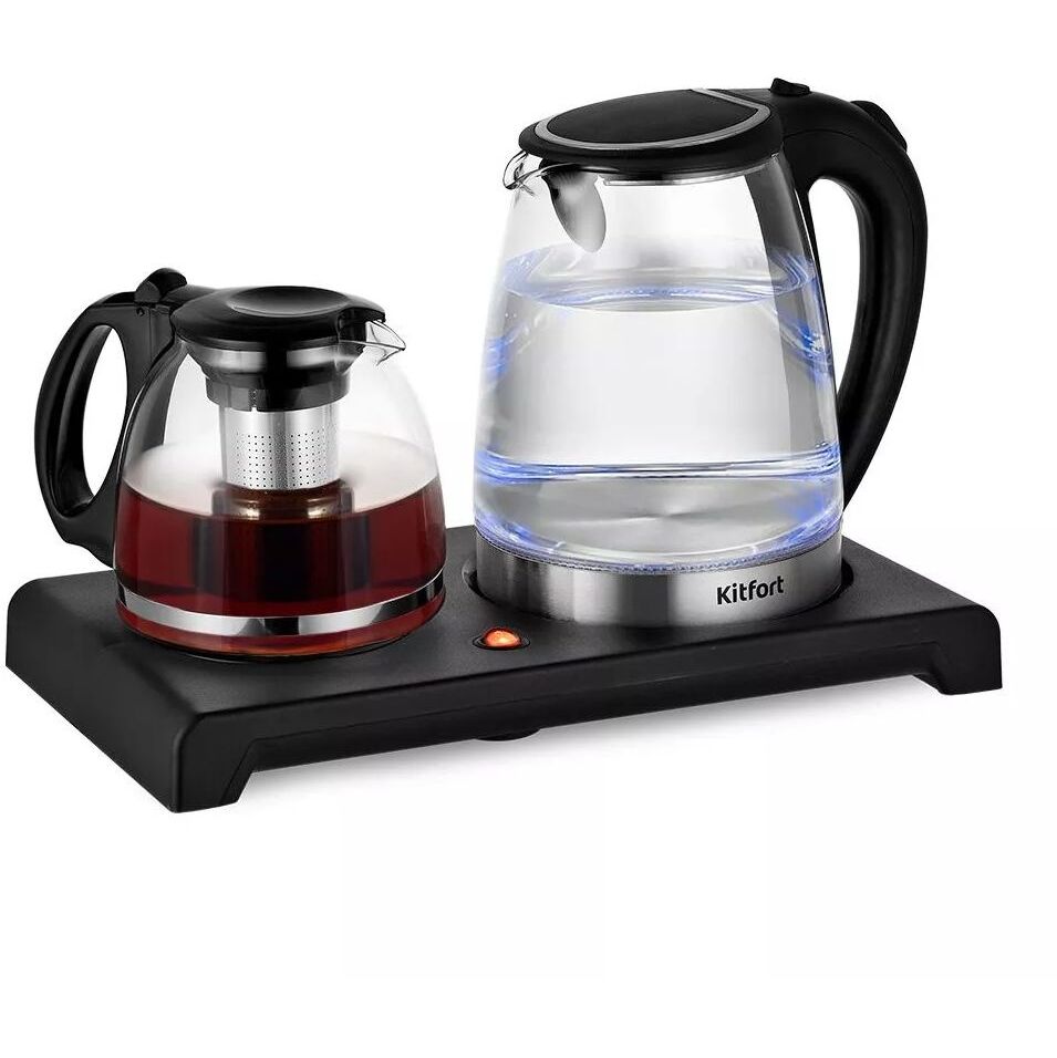 Чайный набор Kitfort КТ-6180 2л, 1500Вт, черный, корпус стекло/пластик