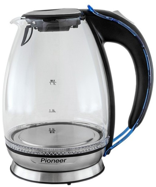 Чайник электрический Pioneer KE806G 1.7 литра, 2200 ватт, подсветка, съемный фильтр, корпус - стекло