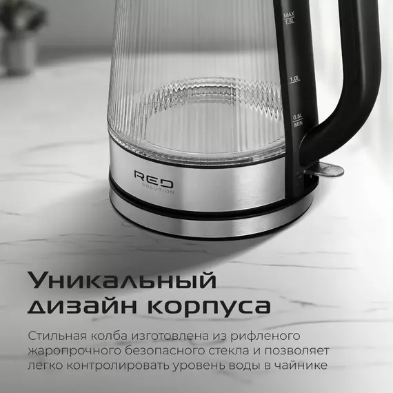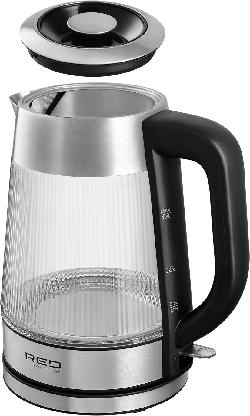 Чайник электрический Red Solution G121 1.8л. 2200Вт черный/серебристый корпус: стекло/металл/пластик