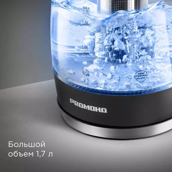 Чайник электрический Redmond KG227 1.7л. 2200Вт черный корпус: пластик/стекло