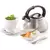 | Особенности | Аксессуары: прочная бакелитовая ручка. Материал крышки: нержавеющая сталь, бакелит. Преимущества: возможность налива воды одной рукой. Капсулированное дно. Бакелитовый свисток со стальной сердцевиной и устройством для открывания носика на ручке. Упаковка: подарочная |