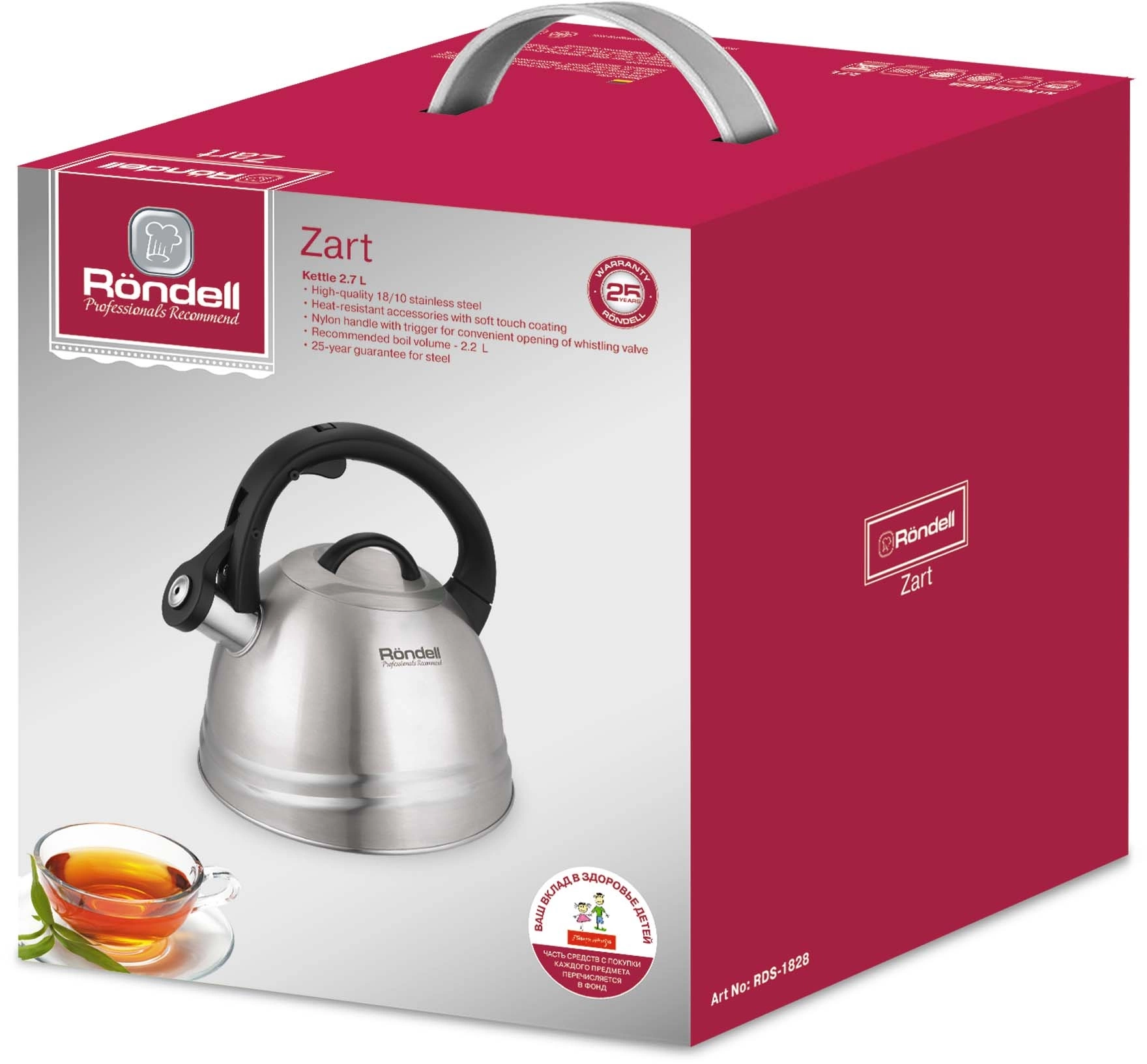 Чайник металлический Rondell RDS-1828 Zart 2.7л. стальной