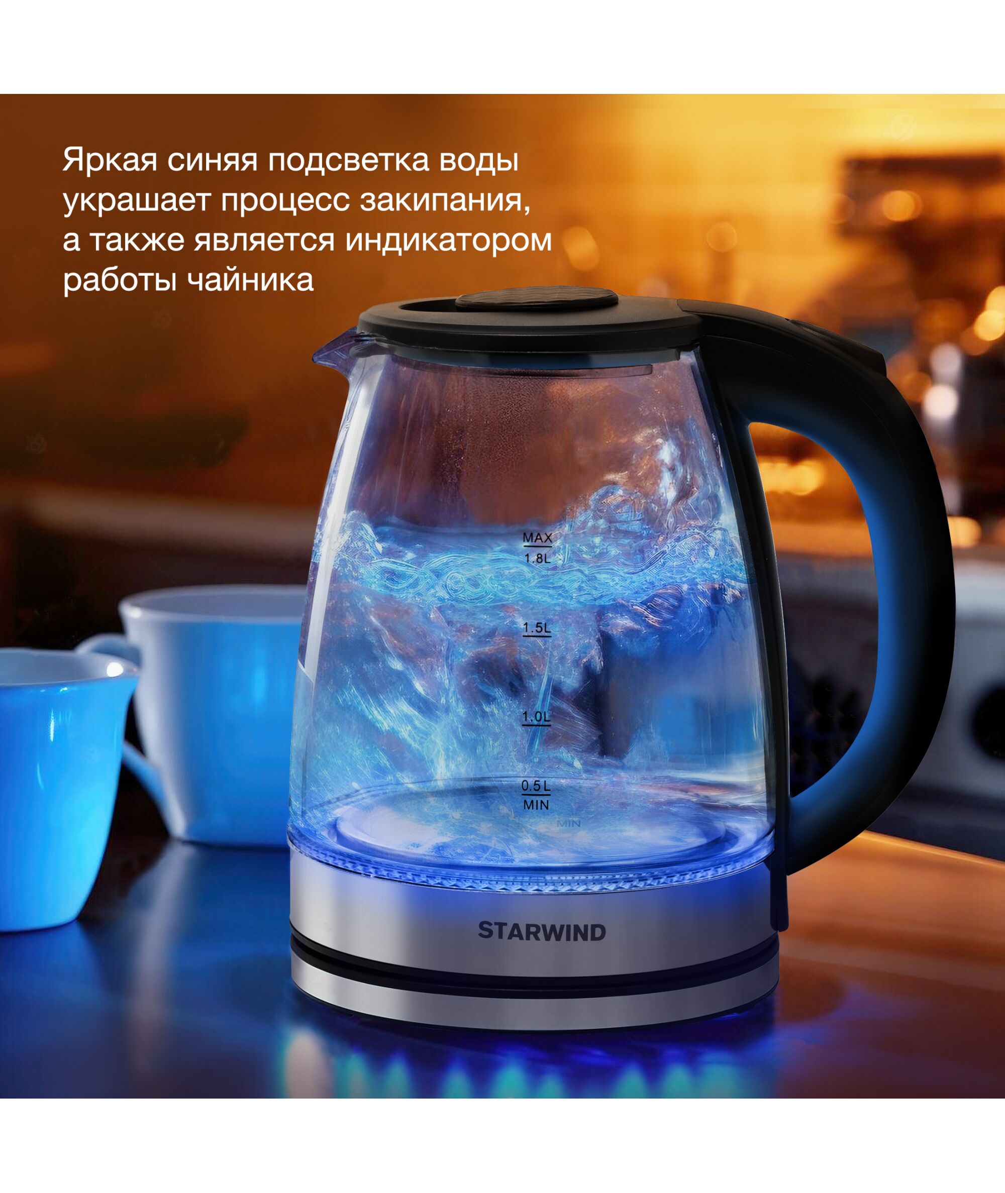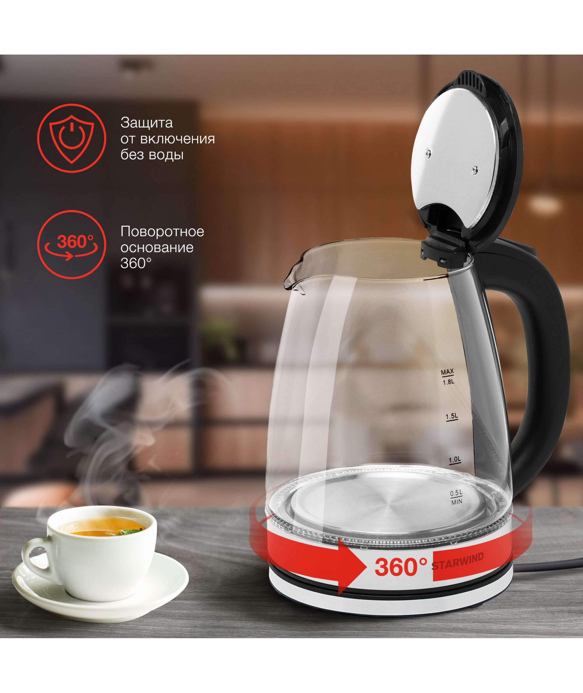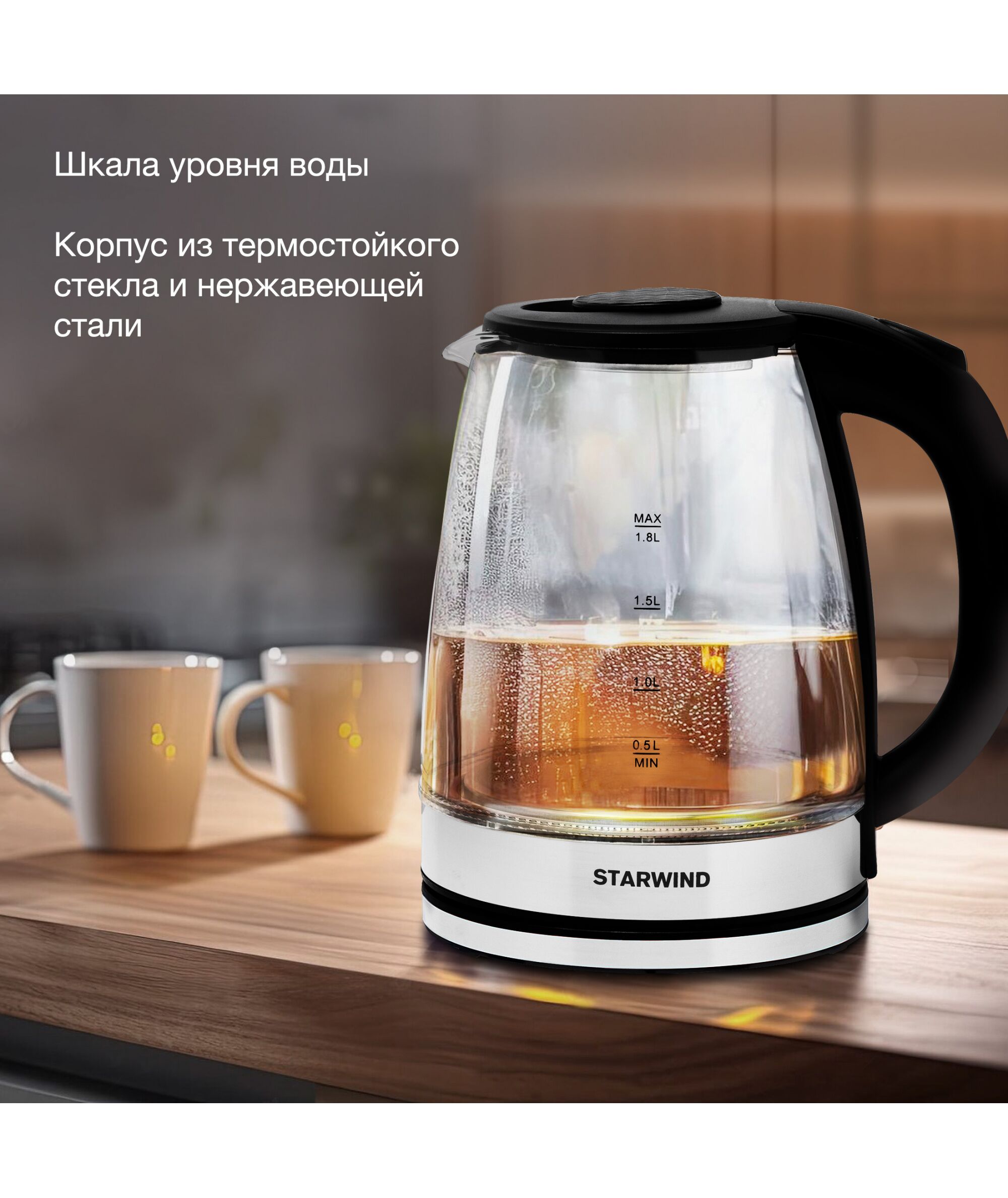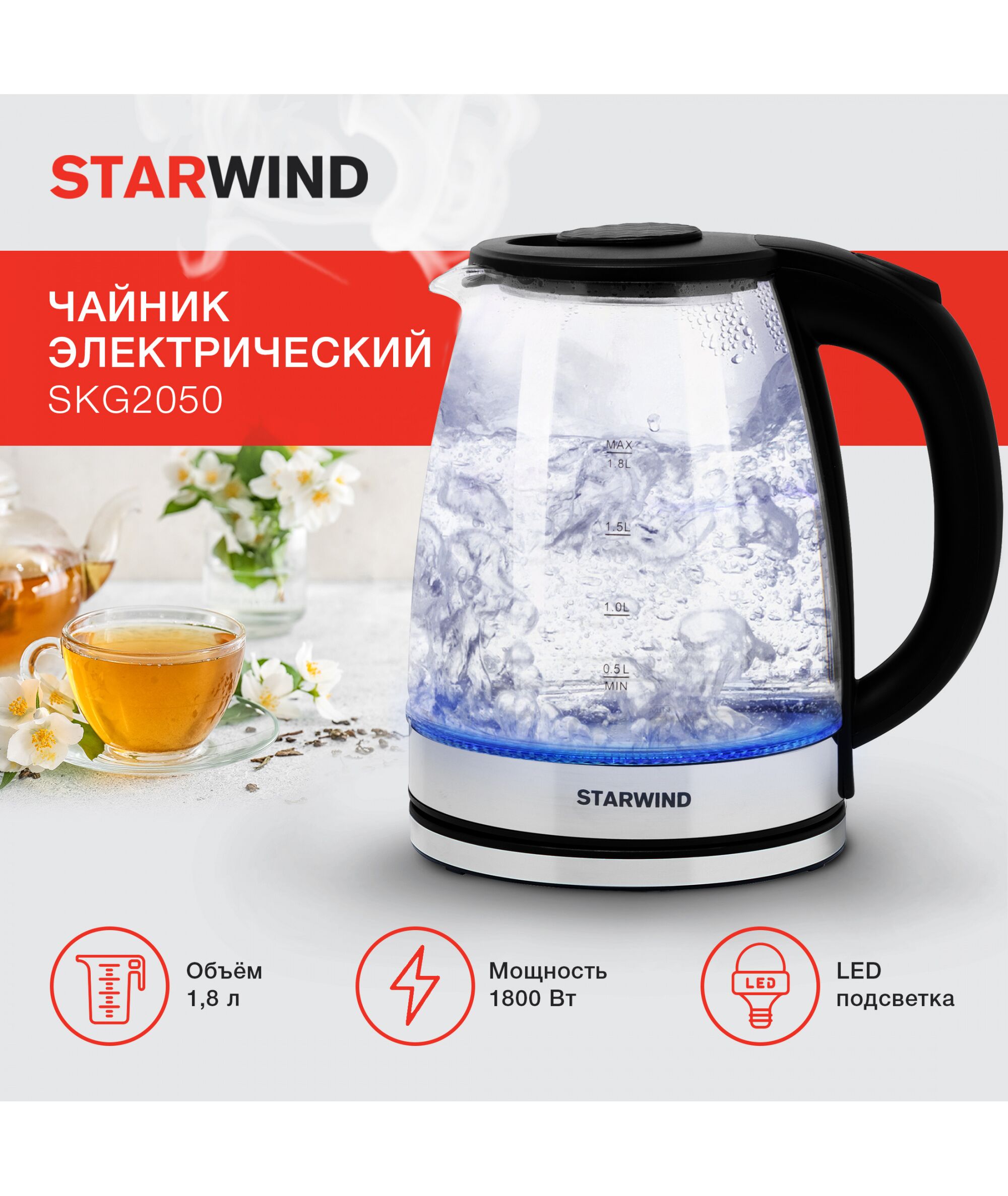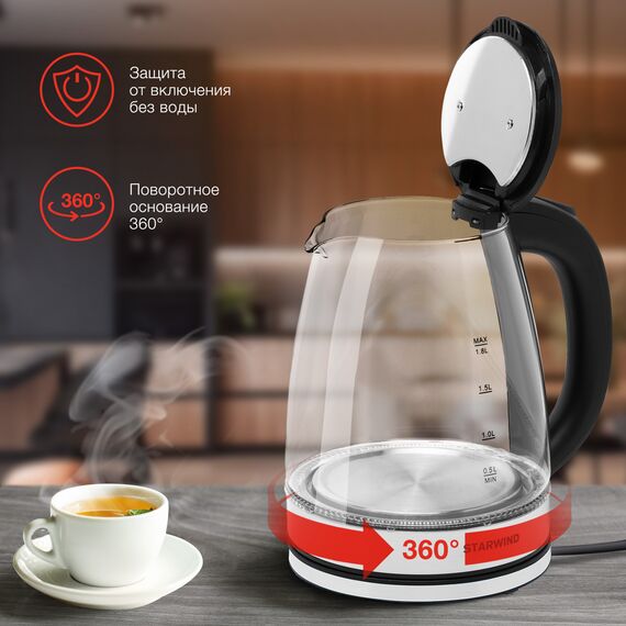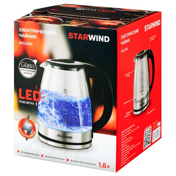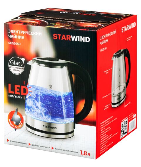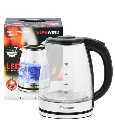 Чайник STARWIND SKG2050 1.8л. 1800Вт черный/серебристый корпус: стекло/пластик
