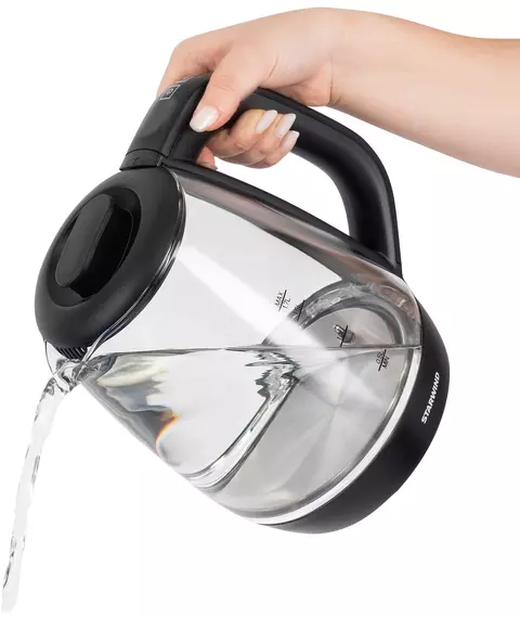 Стильный стеклянный чайник с оптимальным набором технических характеристик, регулировкой температуры и съемной крышкой.