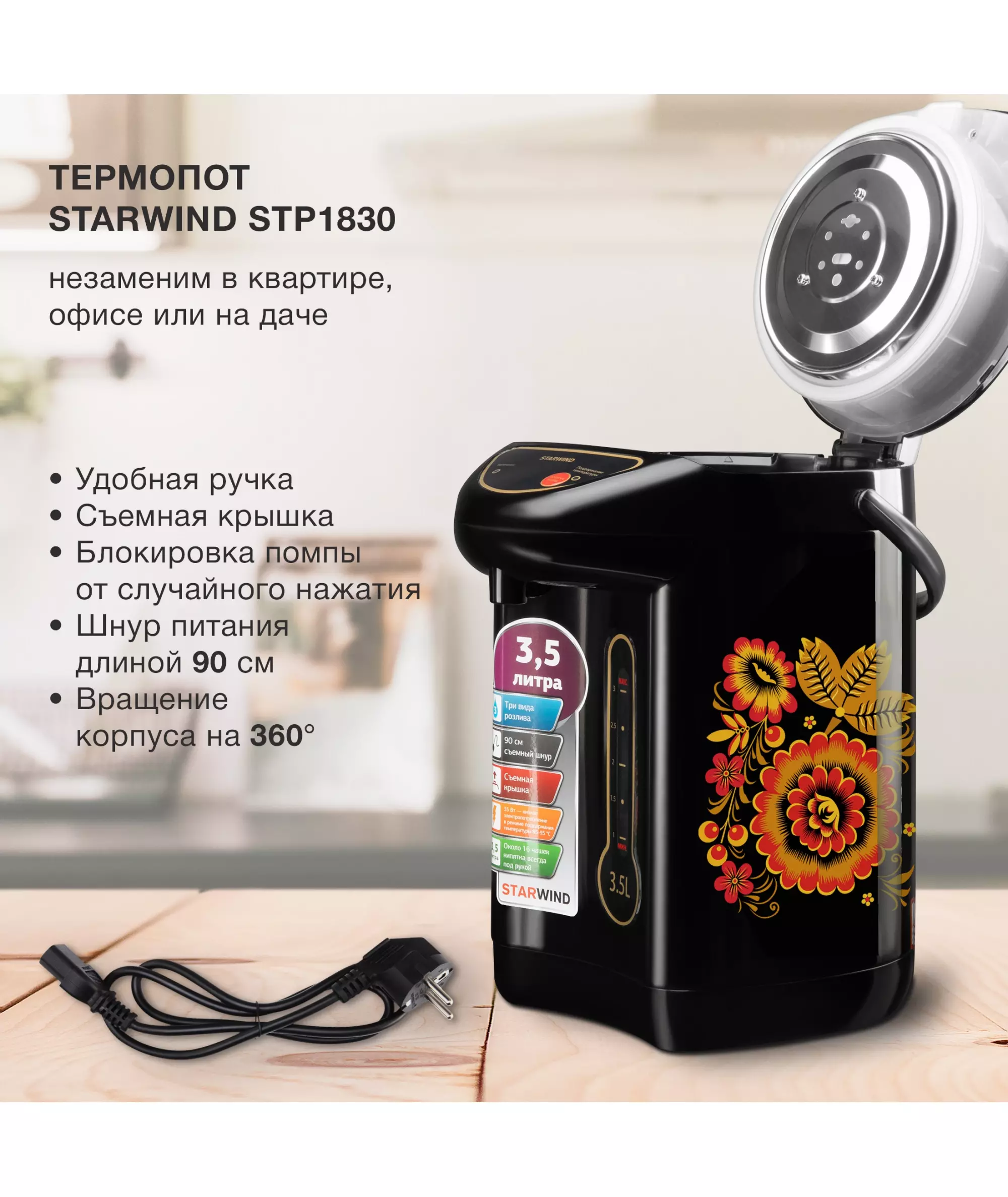 Термопот STARWIND STP1830 3.5л. 750Вт черный