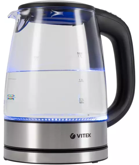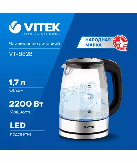 Чайник электрический Vitek VT-8828 1.7л. 2200Вт серебристый корпус: стекло/металл