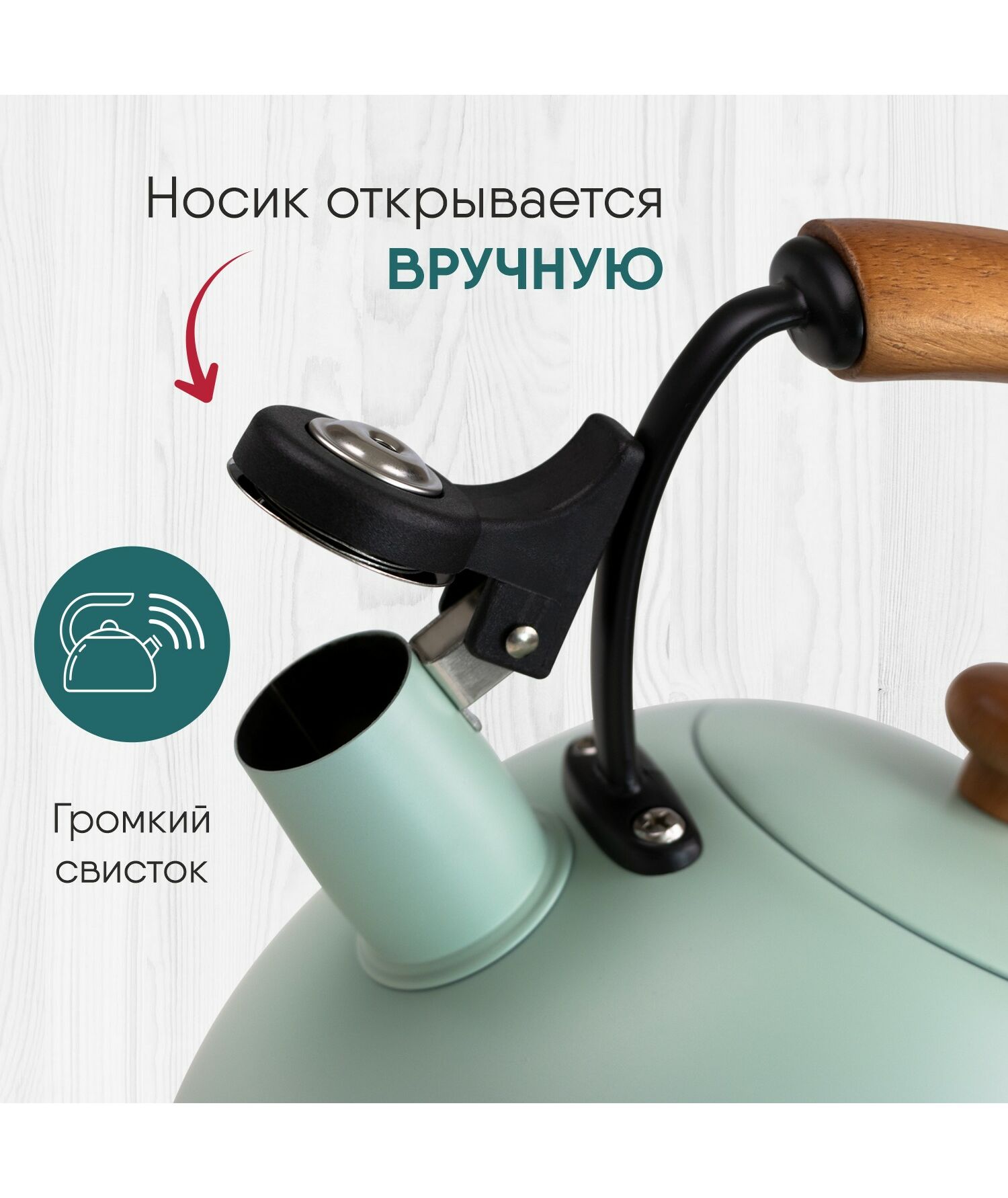 Чайник WILLMARK WTK-3694SS зеленый, 2.8 л, со свистком