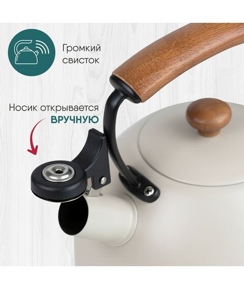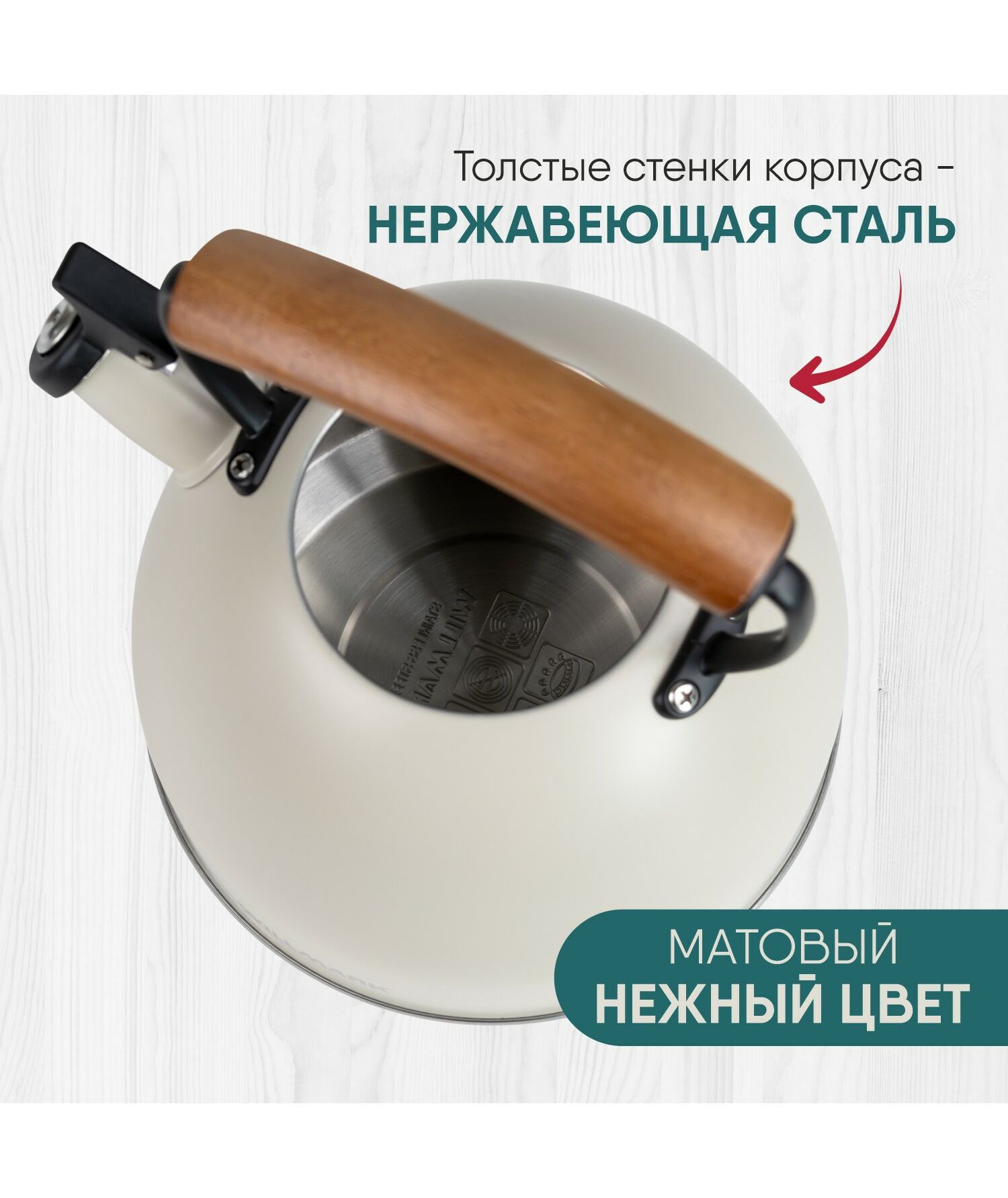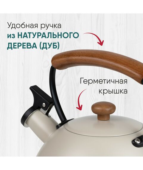 Чайник WILLMARK WTK-3694SS кремово-белый, 2.8 л, со свистком