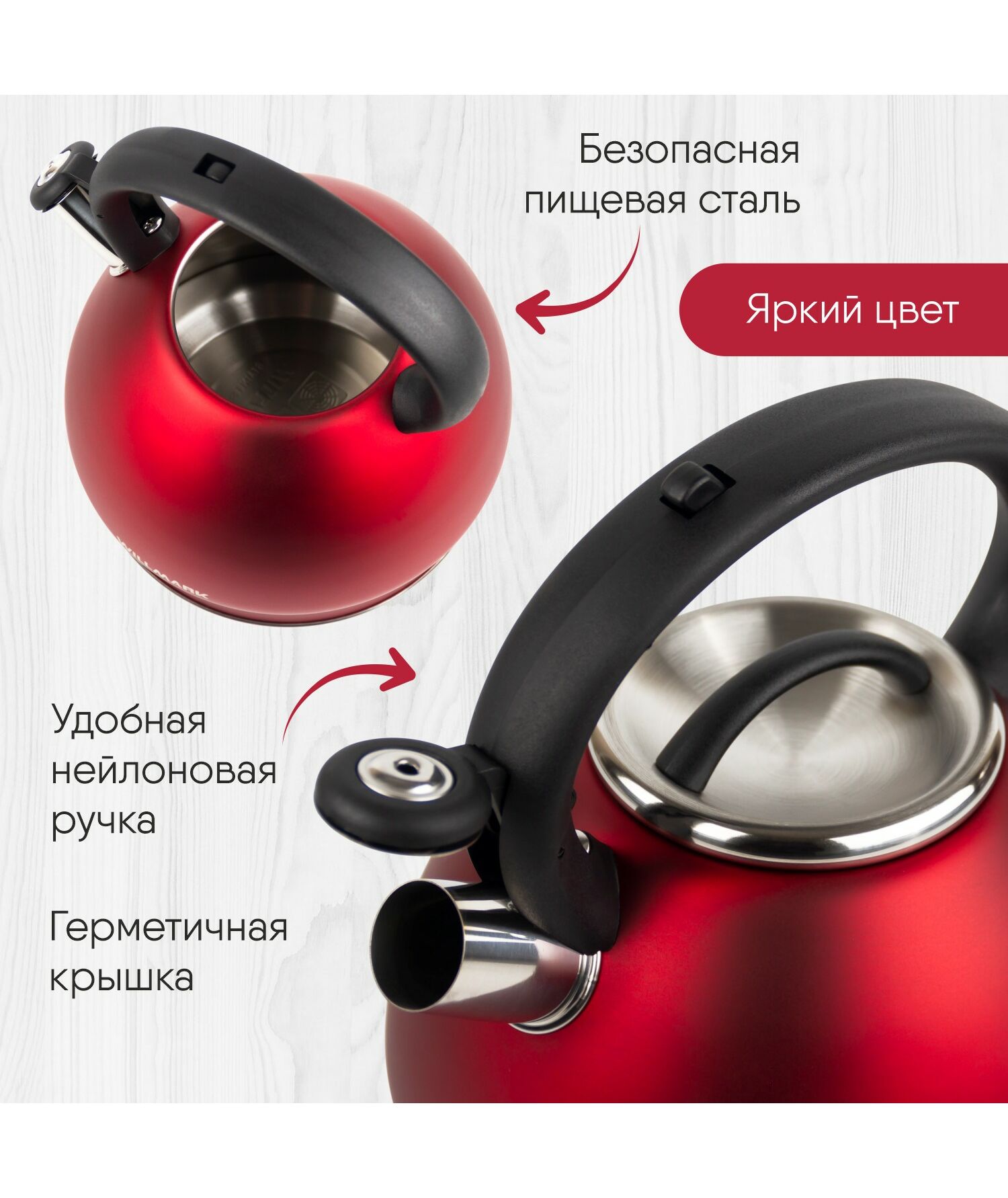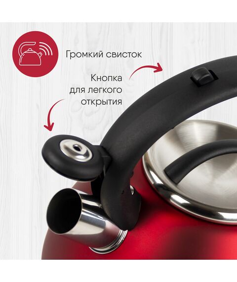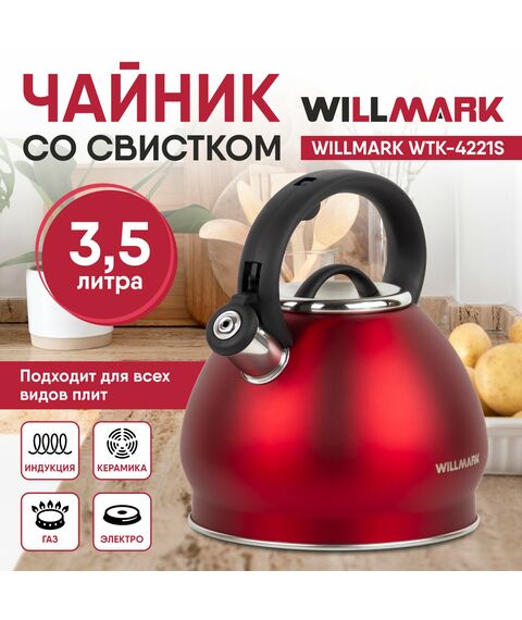 Чайник WILLMARK WTK-4221SS красный, 3.5л, со свистком