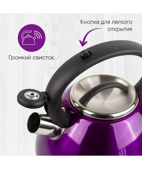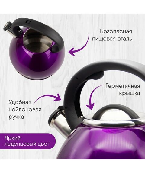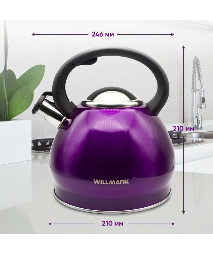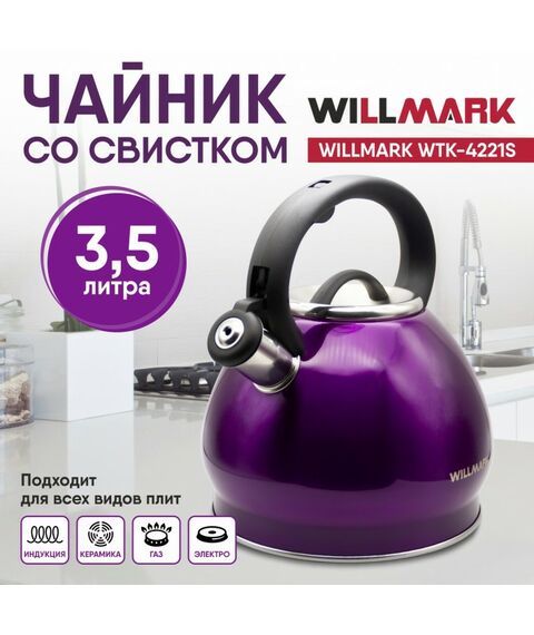 Чайник WILLMARK WTK-4221SS фиолетовый, 3.5л, со свистком