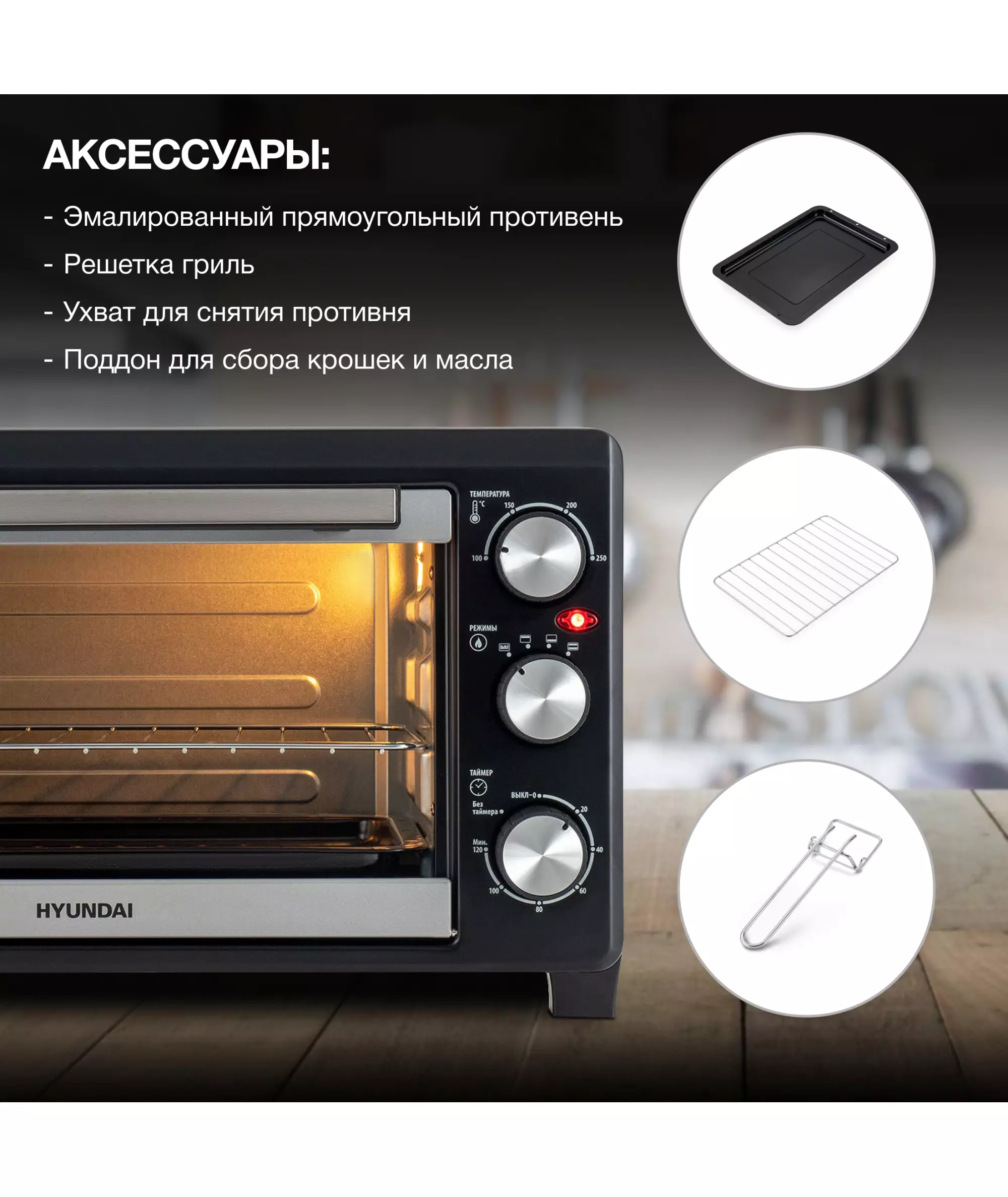 Мини-печь Hyundai MIO-HY072 23л. 1500Вт серебристый/черный [MIO-HY072]