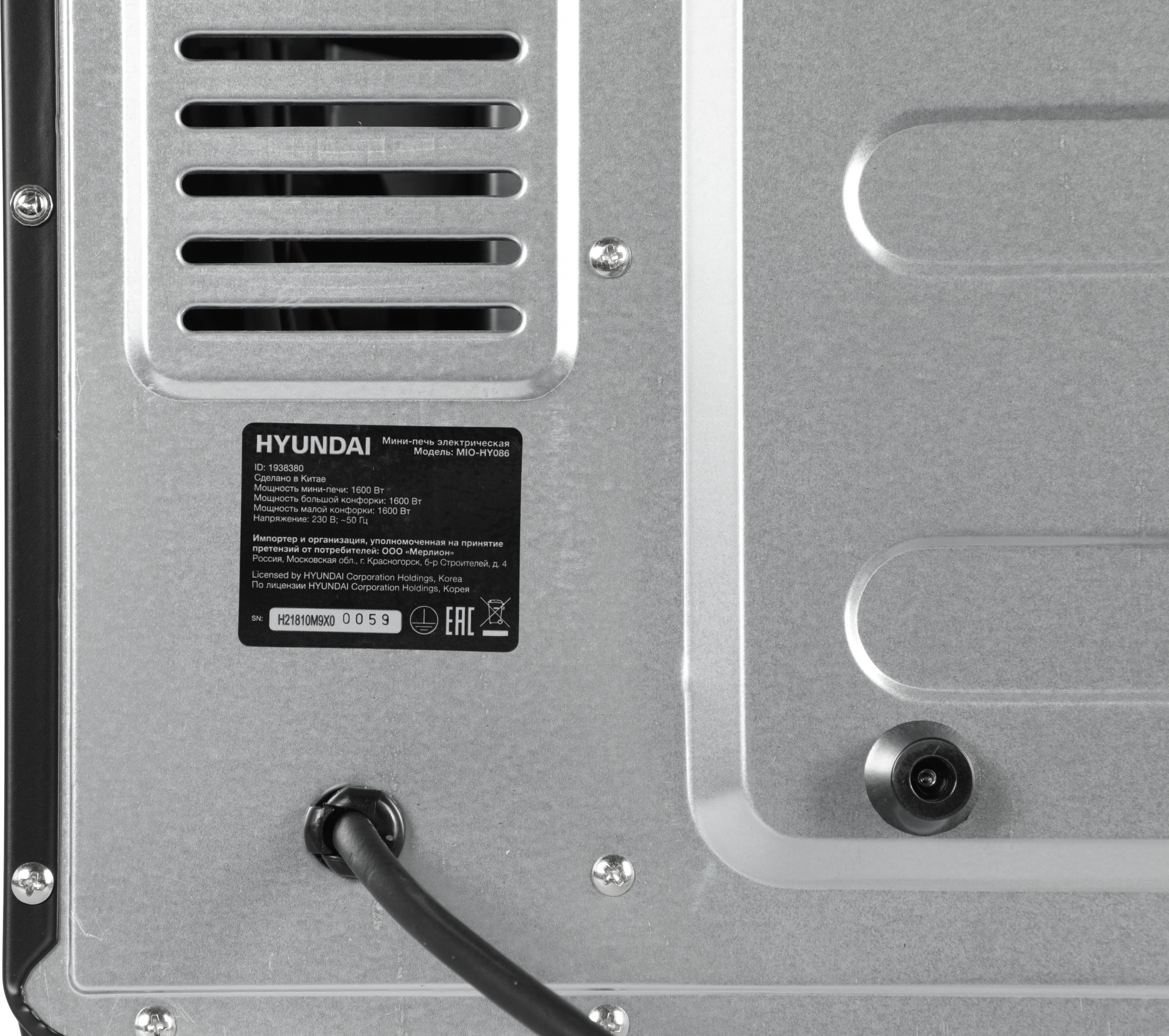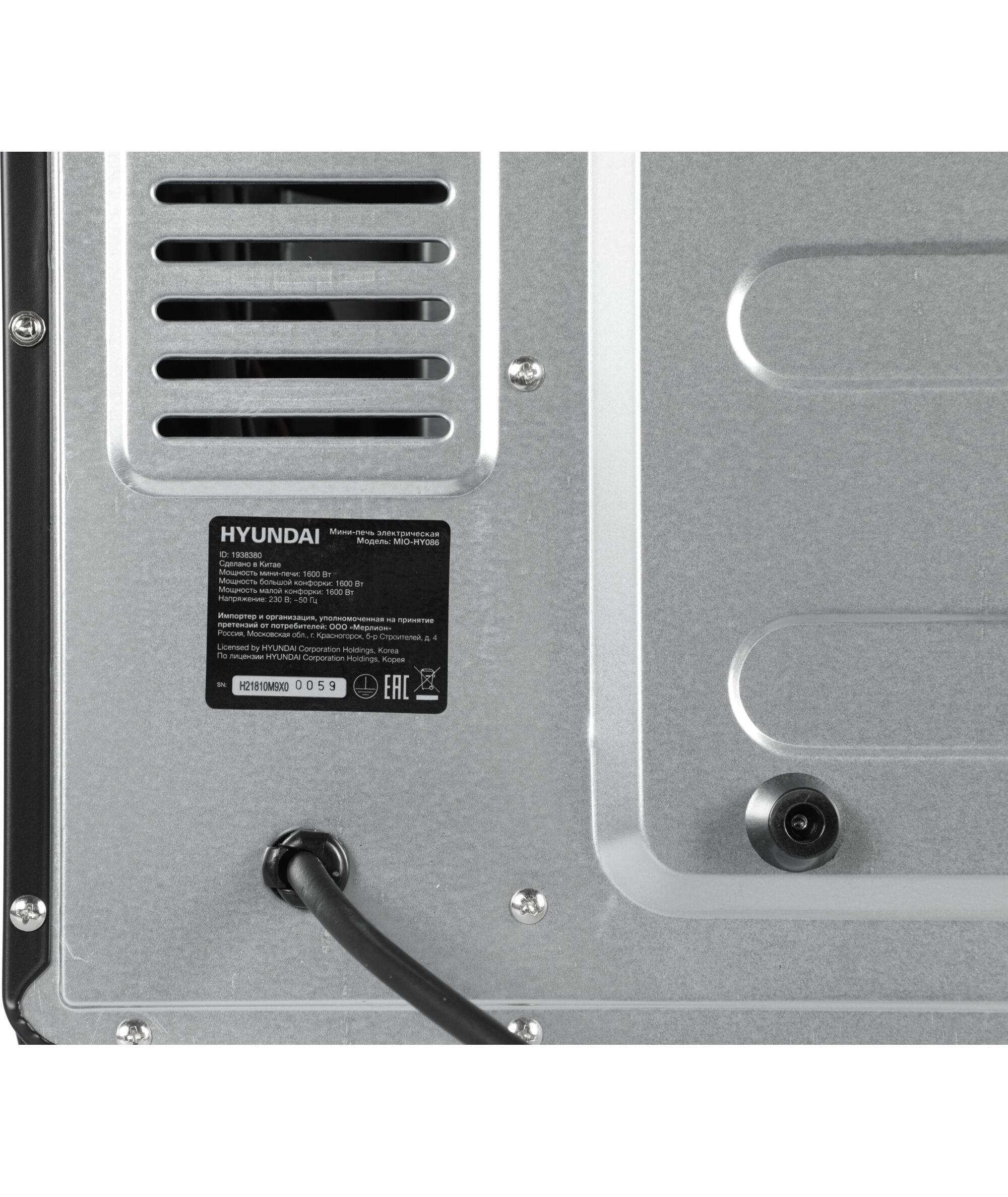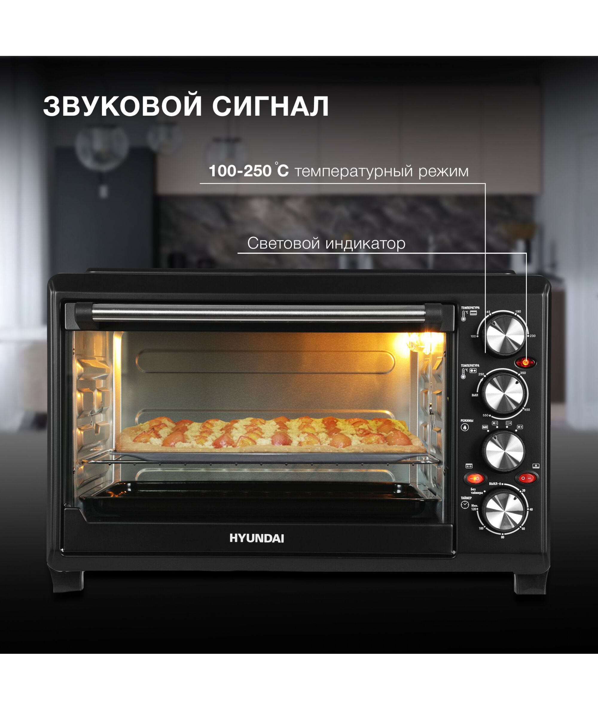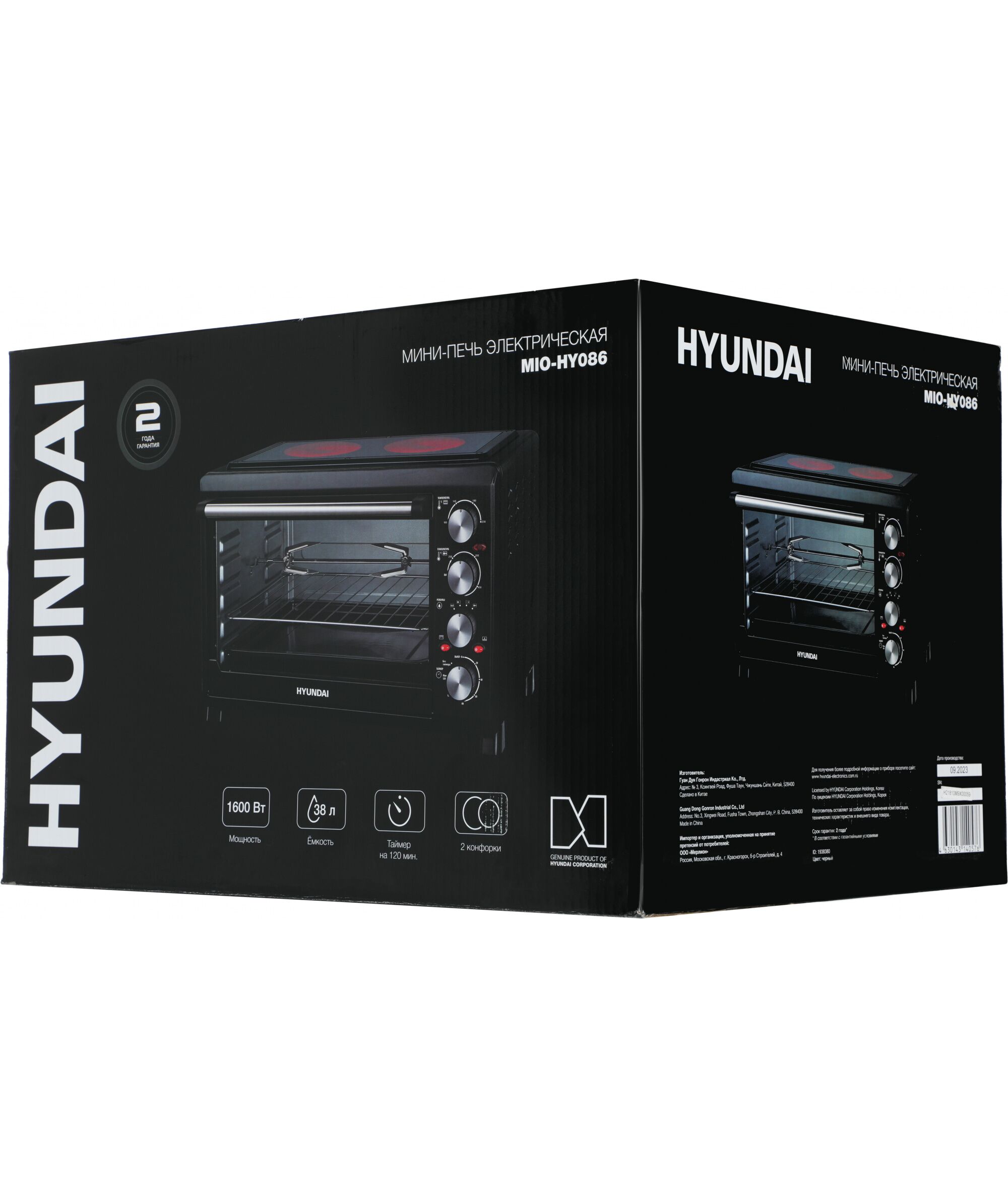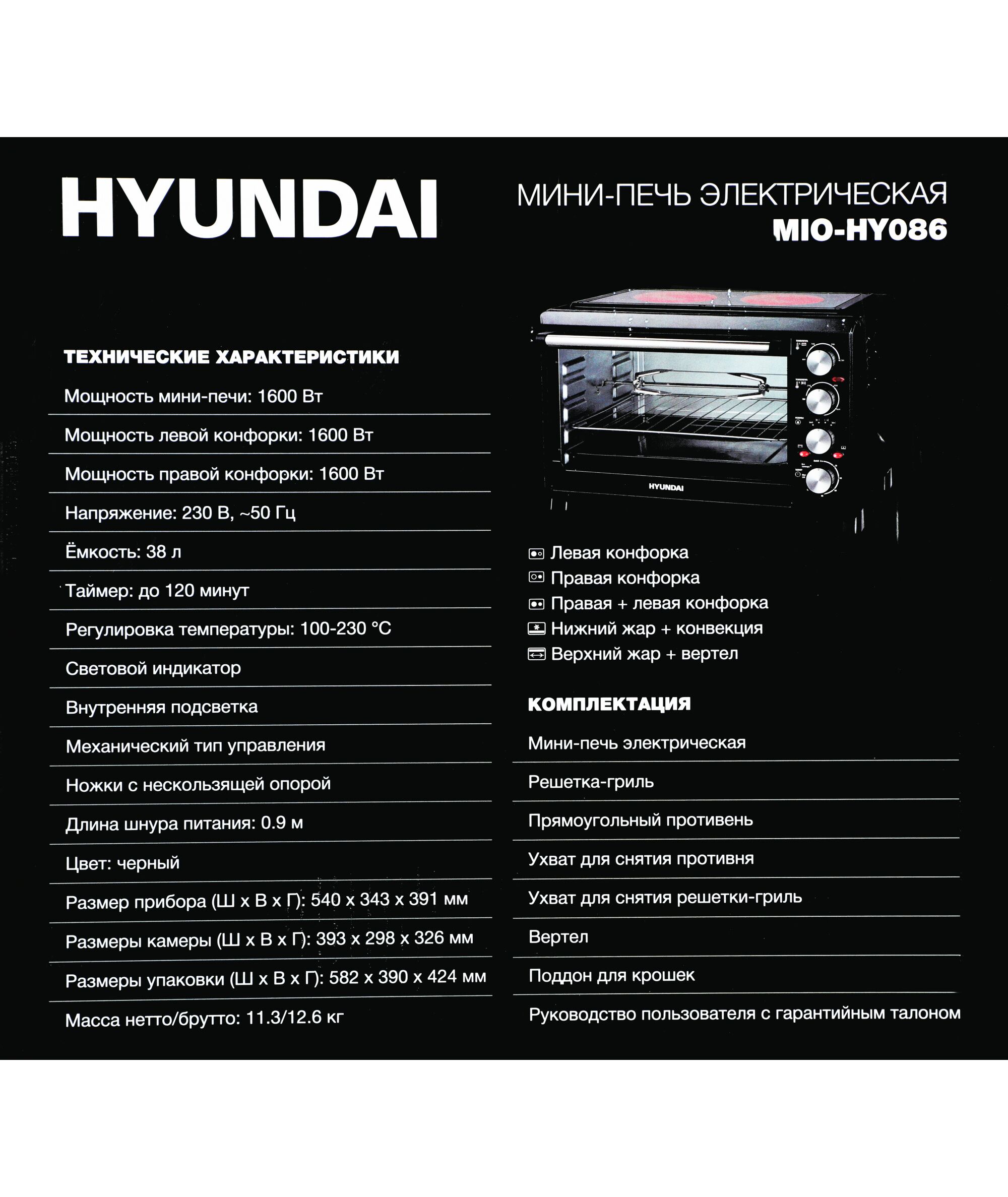 Мини-печь Hyundai MIO-HY086 38л. 1600Вт черный