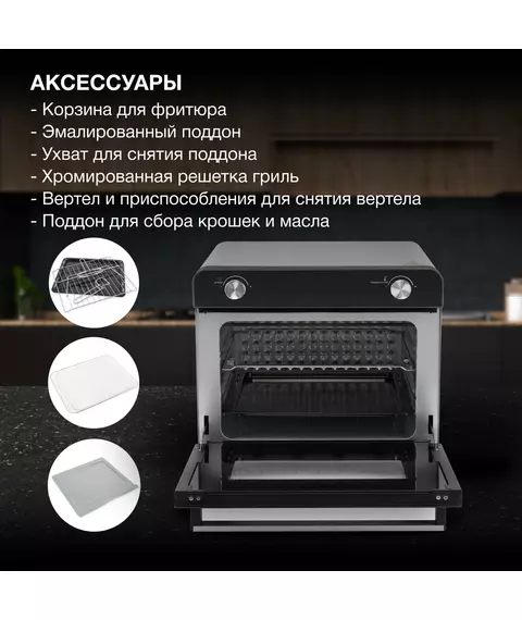 | Дополнительно в комплекте | поддон для сбора крошек и масла |