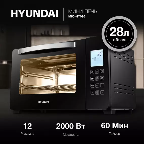 Мини-печь Hyundai MIO-HY096 28л. 1600Вт черный