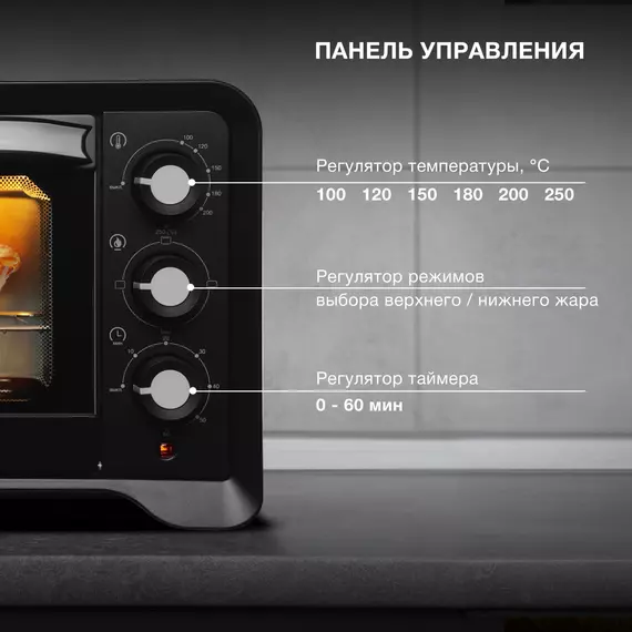 | Особенности | двойное жаропрочное стекло, таймер на 60 мин |