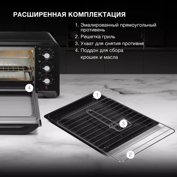 | Дополнительно в комплекте | поддон для сбора крошек и масла |