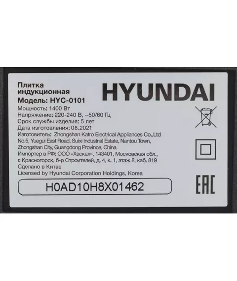 Плита индукционная Hyundai HYC-0101 черный стеклокерамика (настольная)