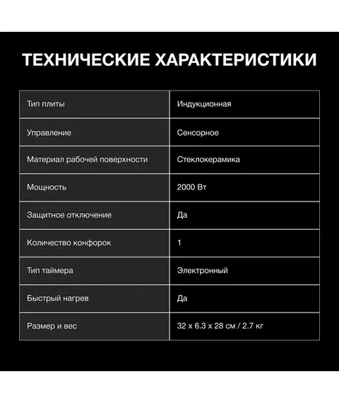 | Тип настольной плиты | Индукционная |