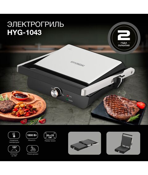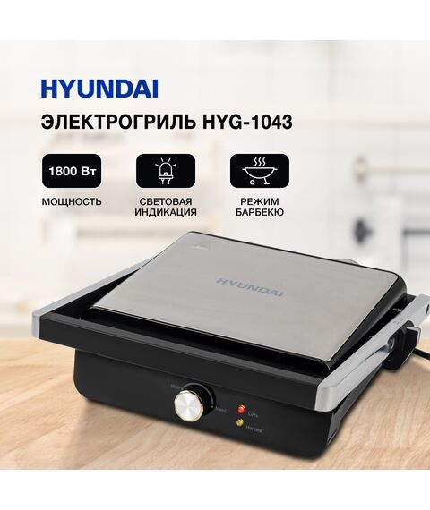 Электрогриль Hyundai HYG-1043 1800Вт черный/черный