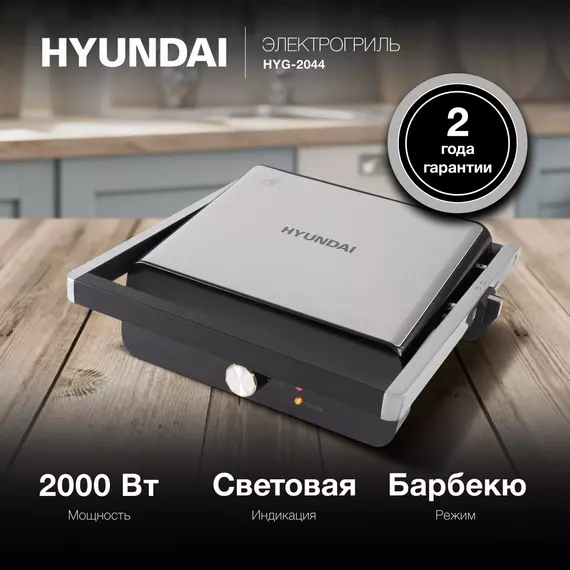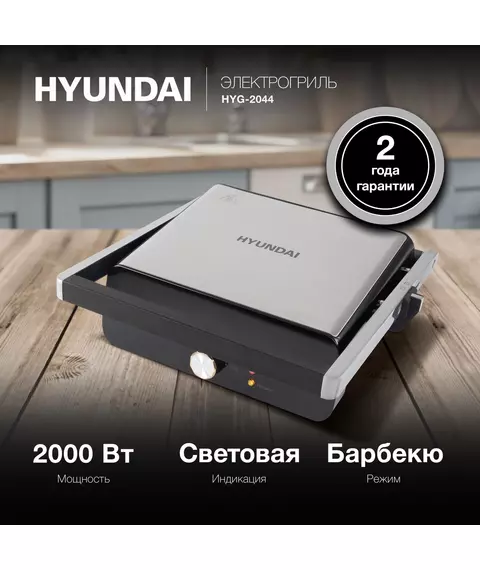 Электрогриль Hyundai HYG-2044 2000Вт черный/черный