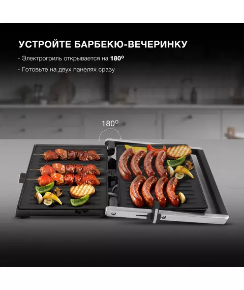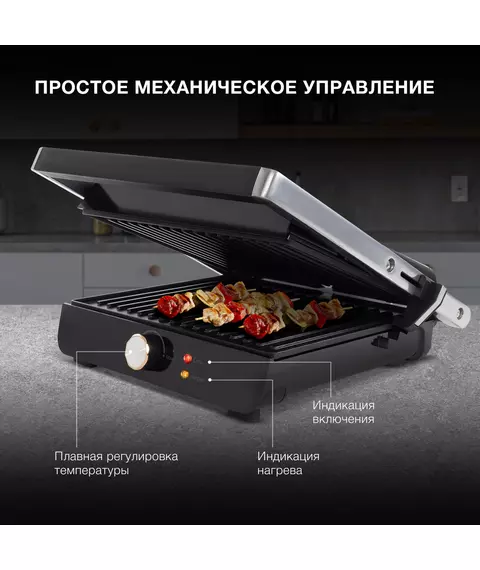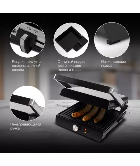 С помощью электрогриля можно приготовить мясо, рыбу, бутерброды, сэндвичи, тосты, овощи и многое другое. Ребристая поверхность и высокая температура панелей способствуют быстрому приготовлению и проявлению характерного «полосатого» рисунка на продуктах.
