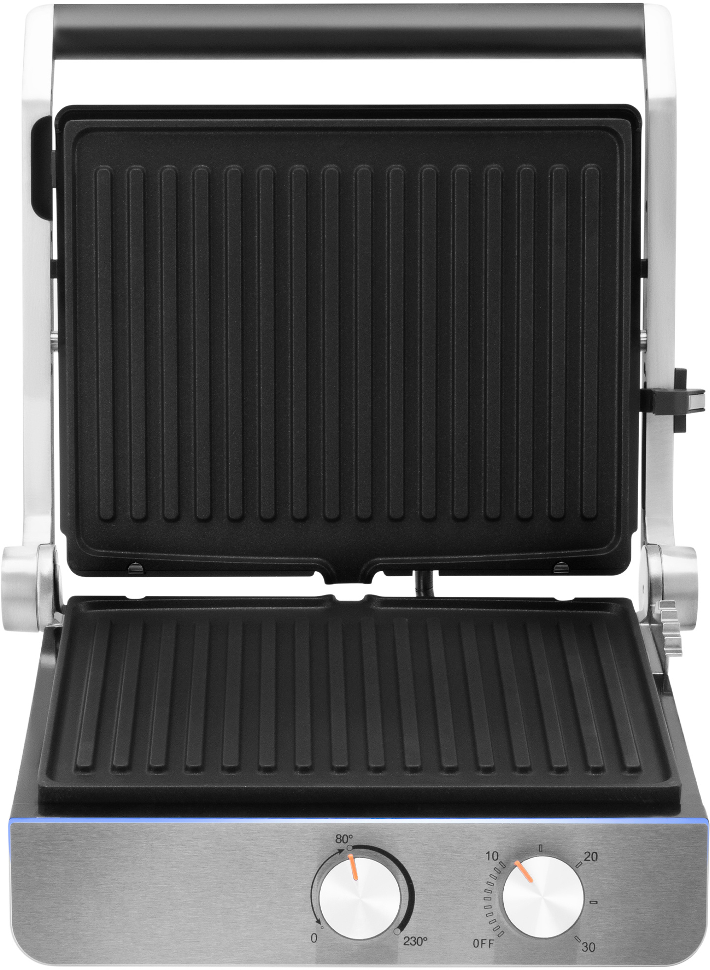Съемные панели с антипригарным покрытием позволяют готовить с не большим количеством масла или вообще без него.