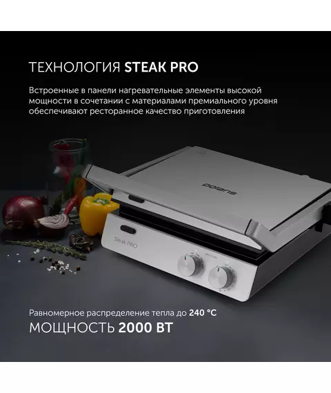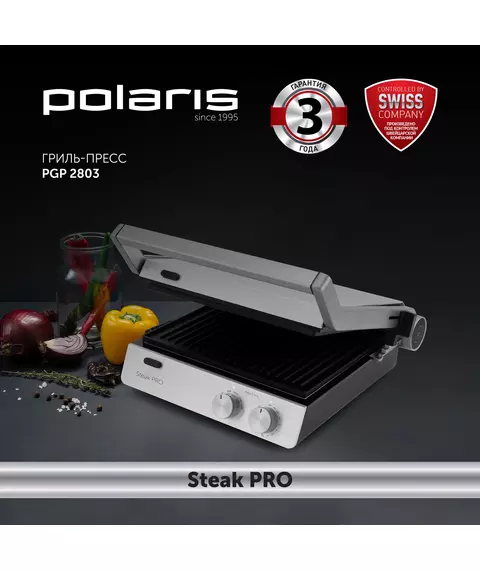 Электрогриль Polaris PGP 2803 2000Вт серебристый