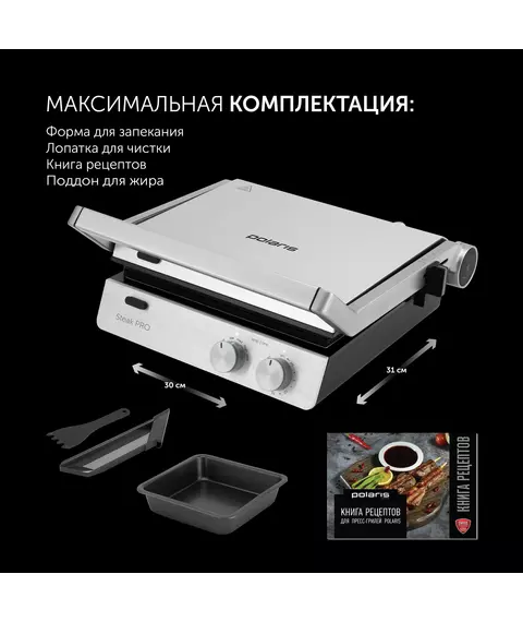 | Принадлежности в комплекте | "Съёмная панель для запеканияЛопатка для чисткиКнига рецептов" |