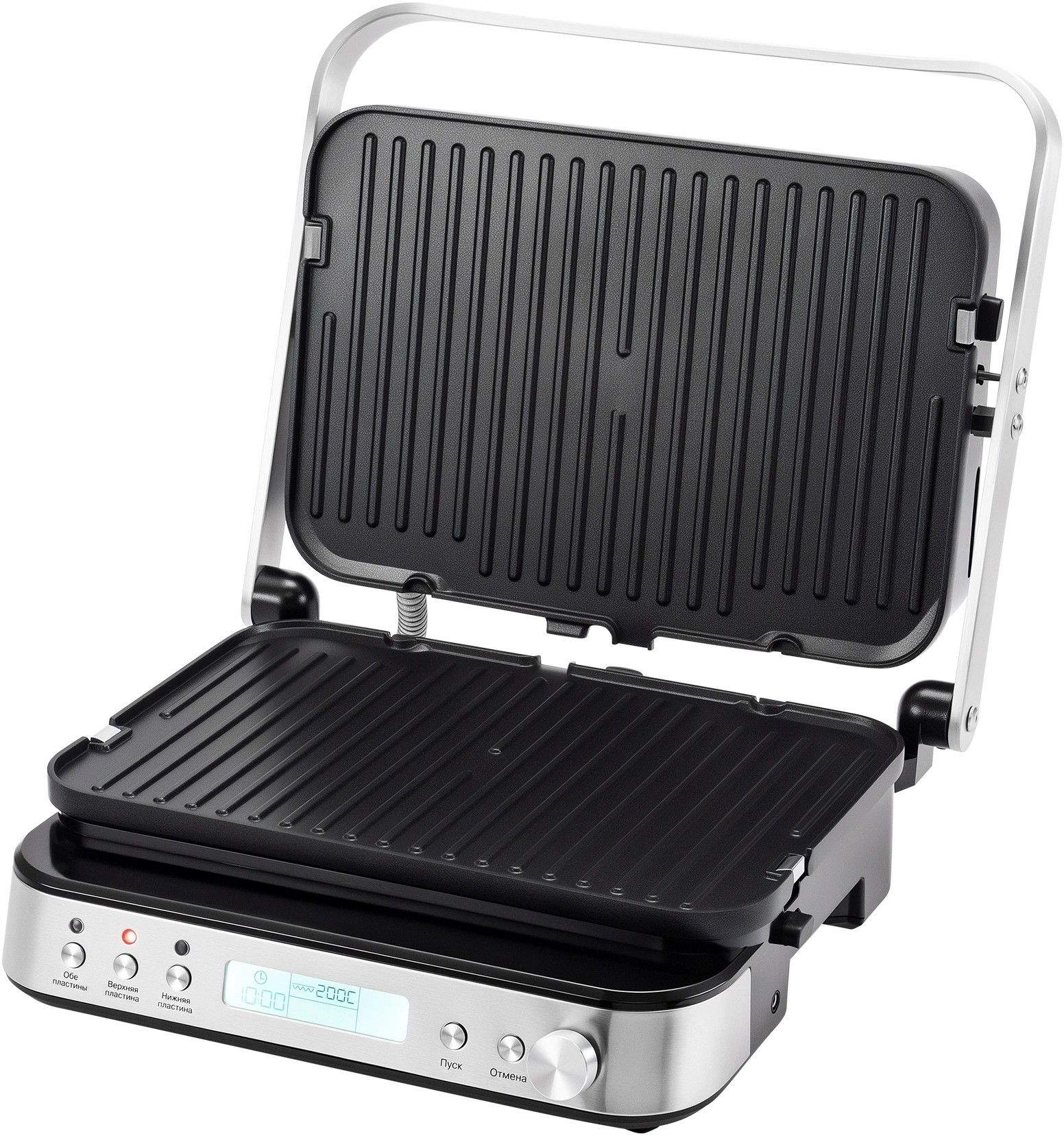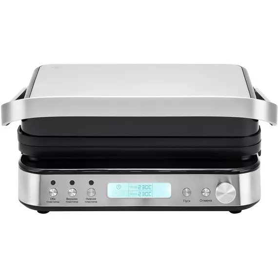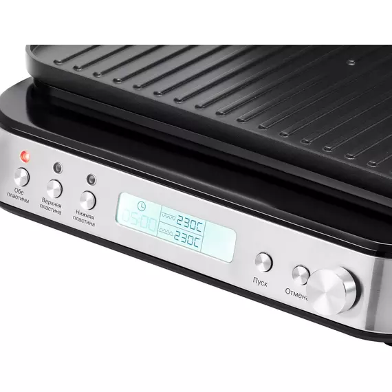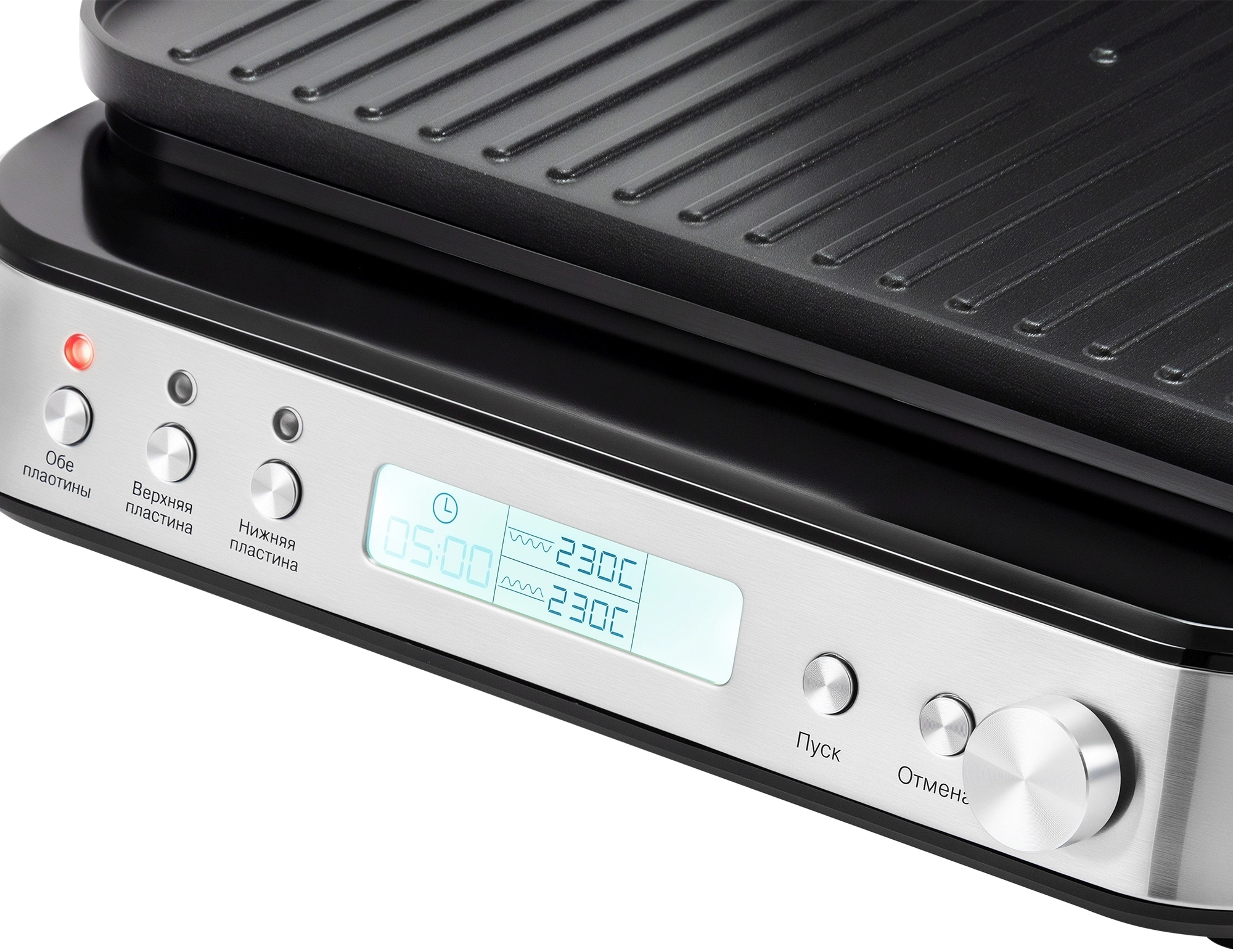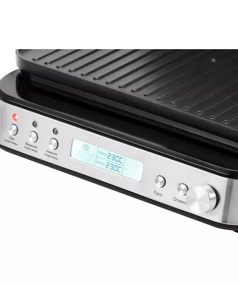 | Особенности 2 | Интуитивное и понятное управление, ручной режим настройки времени и температуры, открытие на 180° для работы в режиме барбекю. |