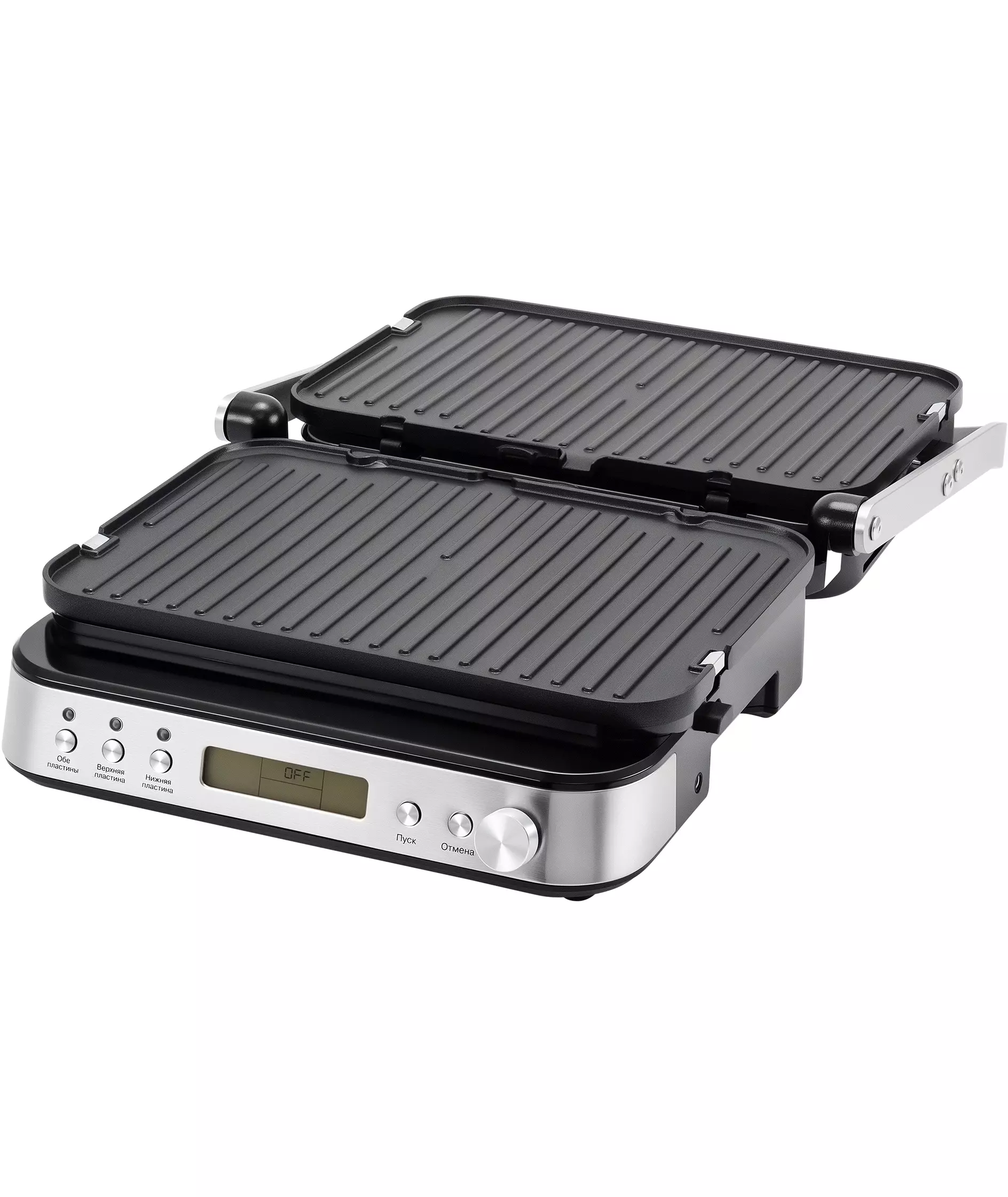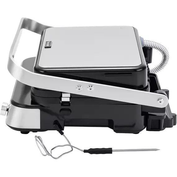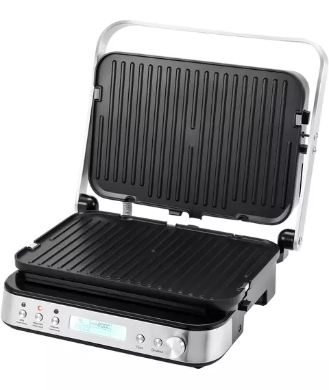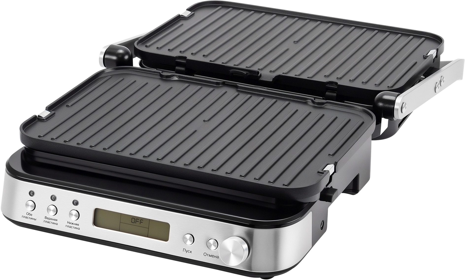 | Особенности 2 | Интуитивное и понятное управление, ручной режим настройки времени и температуры, открытие на 180° для работы в режиме барбекю. |