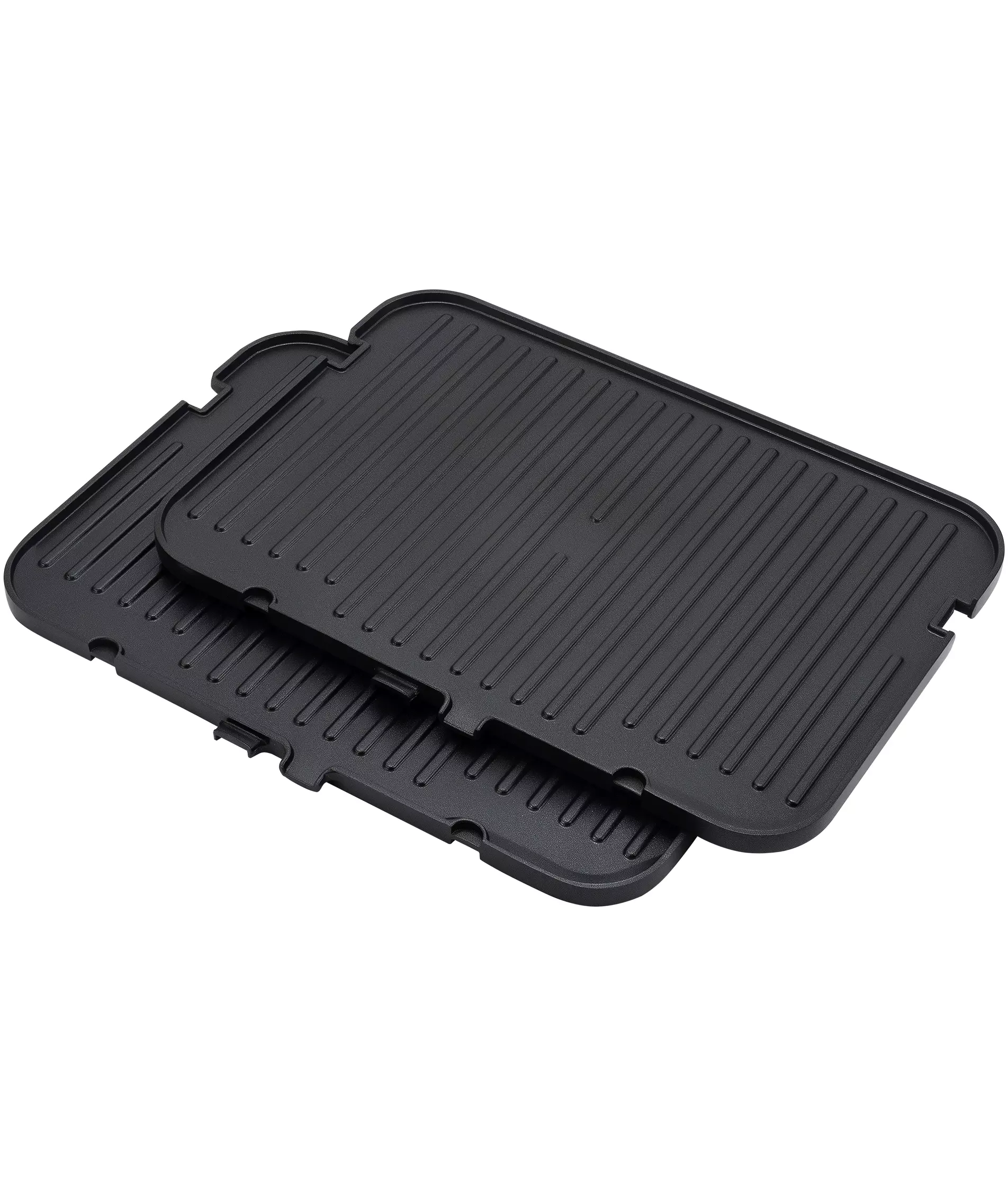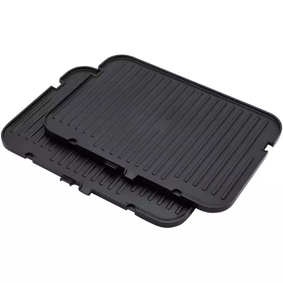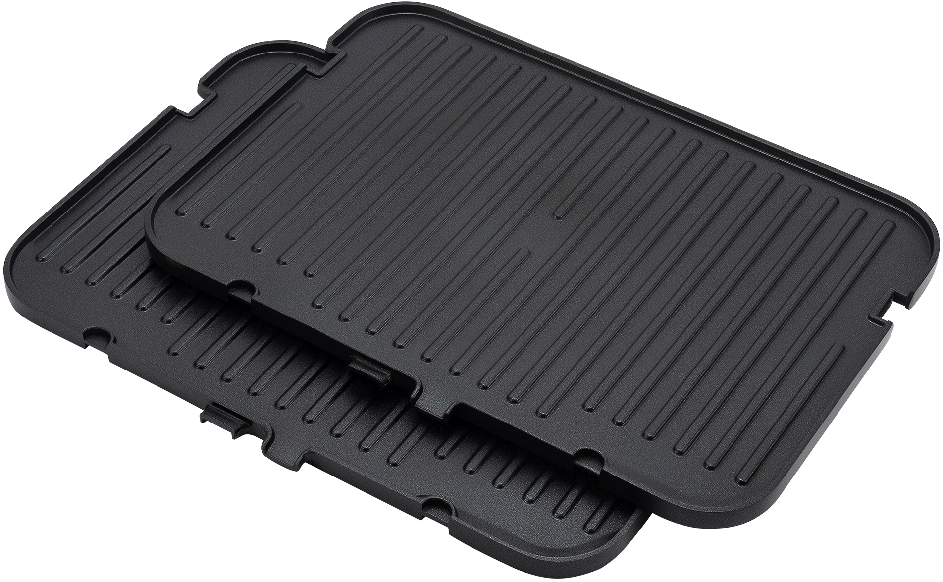 Съемные панели с антипригарным покрытием позволяют готовить с не большим количеством масла или вообще без него, а так же их просто мыть после приготовления. Двусторонние панели - с одной стороны гриль, с другой стороны плоская панель, дают возможность использовать гриль как плиту.