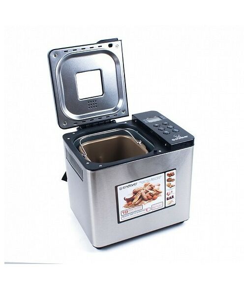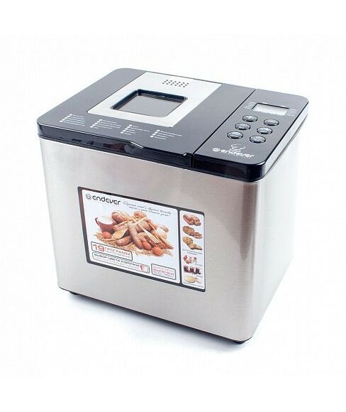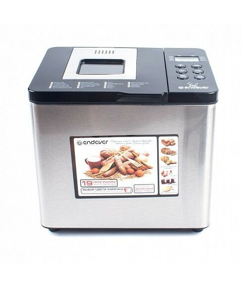 Хлебопечь Endever Skyline MB-54 вес выпечки до 750 г, регулировка веса выпечки, мощность 750 Вт, программ выпечки: 19, цвет черный/стальной