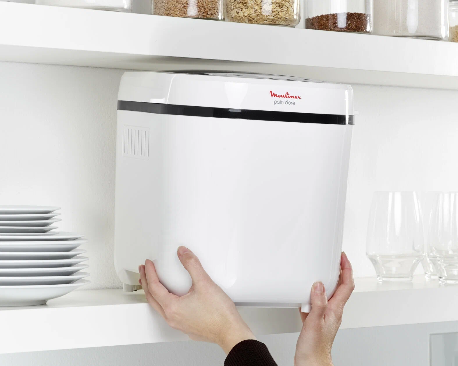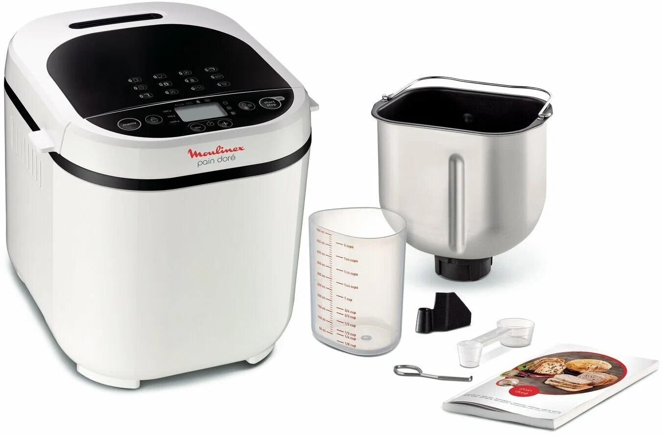 Хлебопечь Moulinex OW210 вес выпечки до 1000 г, регулировка веса выпечки, мощность 650 Вт, программ выпечки: 12, цвет белый