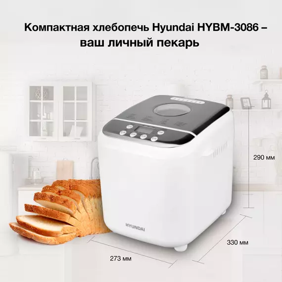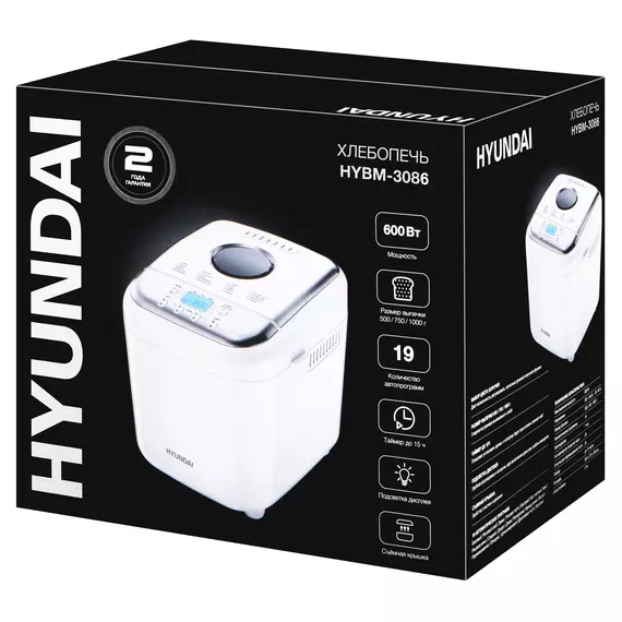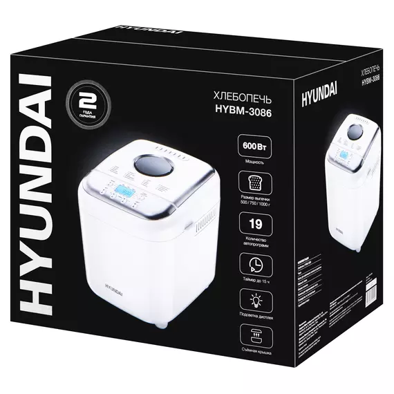 Хлебопечь Hyundai HYBM-3086 600Вт белый/серебристый