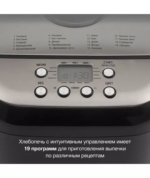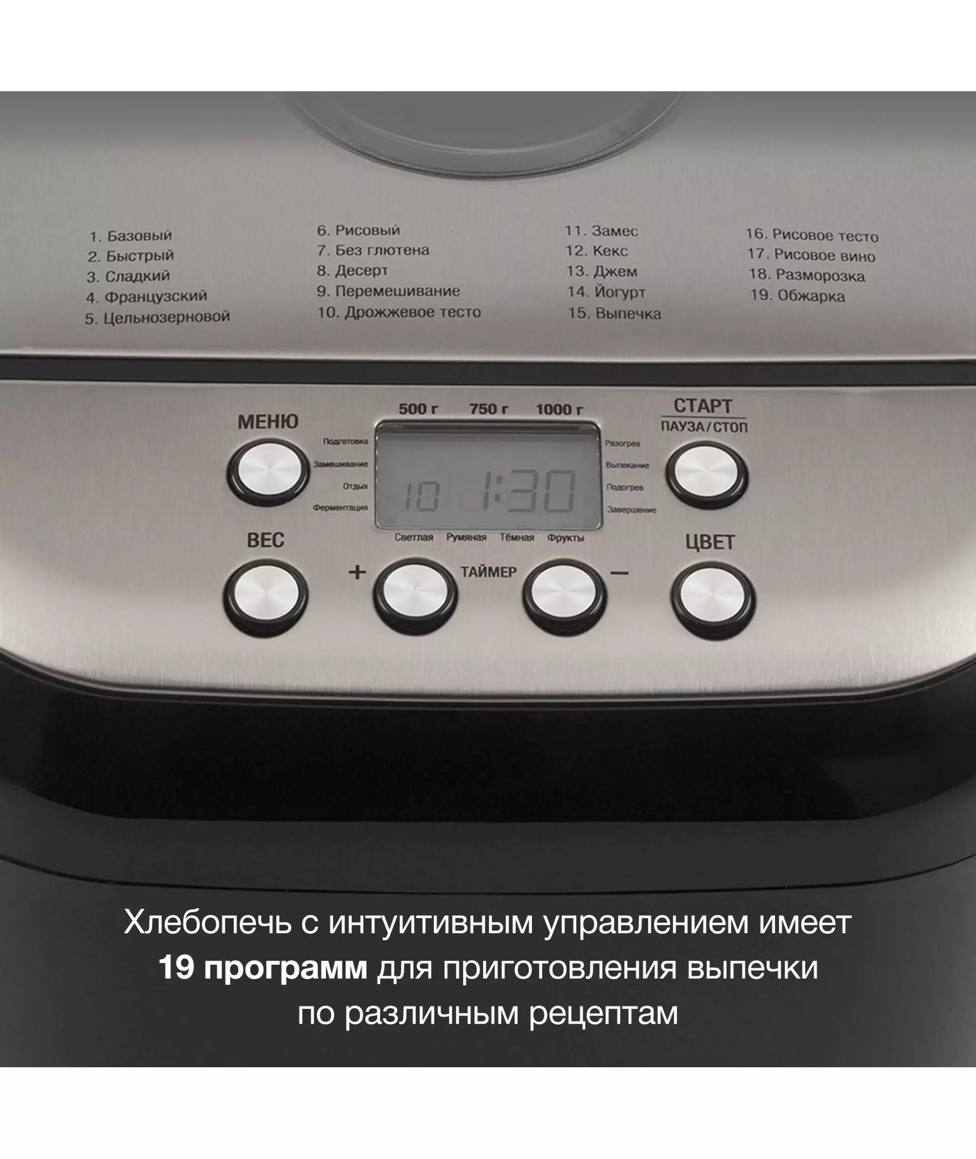 | Программы | безглютеновый хлеб, варенье/джемы, выпечка/кексы/шарлотки, замес теста |