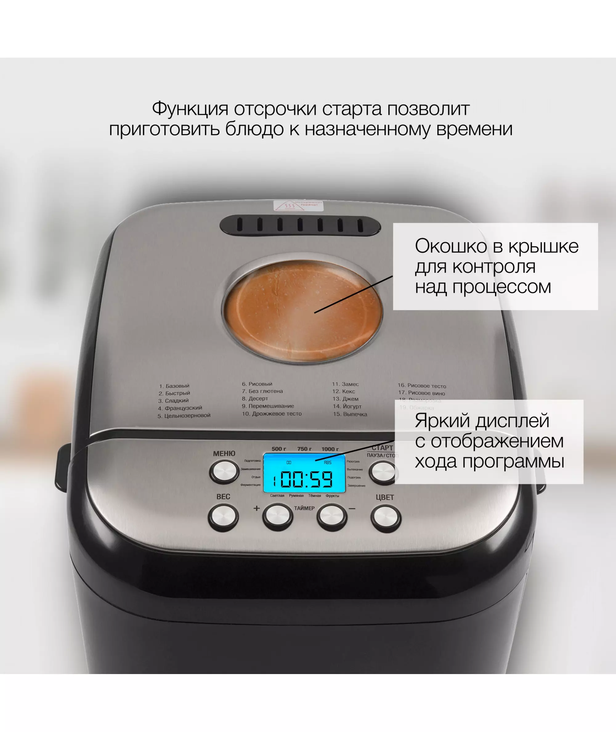 | Особенности хлебопечи | антипригарное покрытие формы, окно контроля процесса |