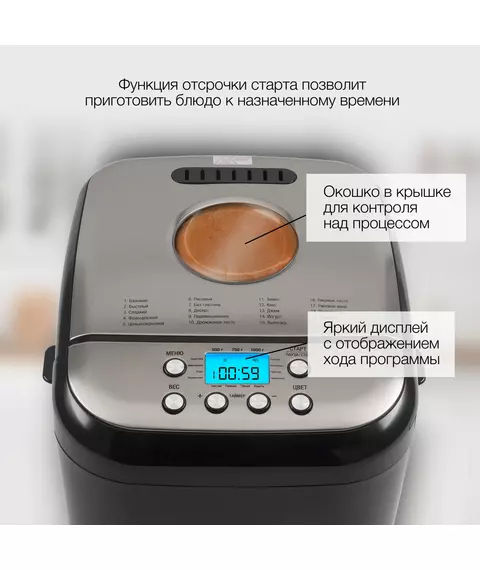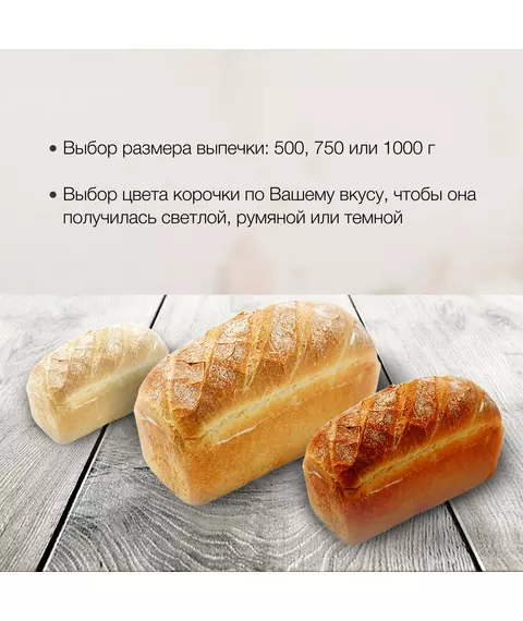 | Функции | выбор цвета корочки, запоминание программы, поддержание температуры, регулировка веса выпечки, таймер отсрочки старта |