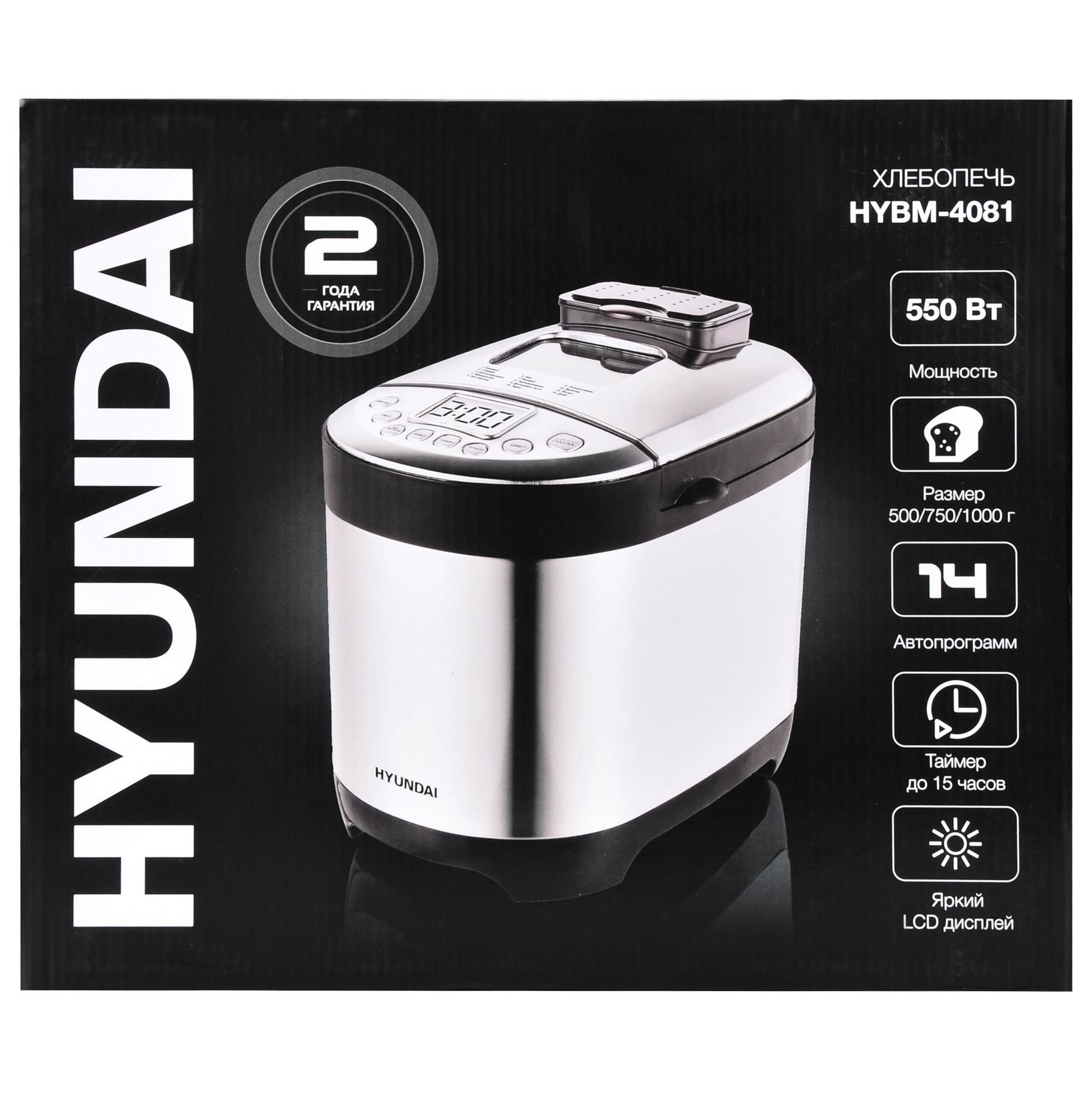 Хлебопечь Hyundai HYBM-4081 550Вт черный/серебристый