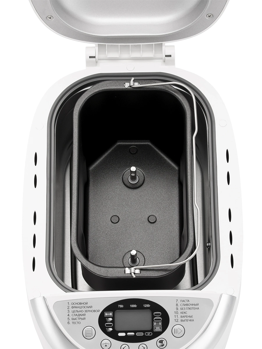| Программы выпечки | Базовая, французский хлеб, хлеб из цельнозерновой муки, сладкий хлеб, супер быстрая, кефир, без глютена, пирожное, варенье, запекание. |