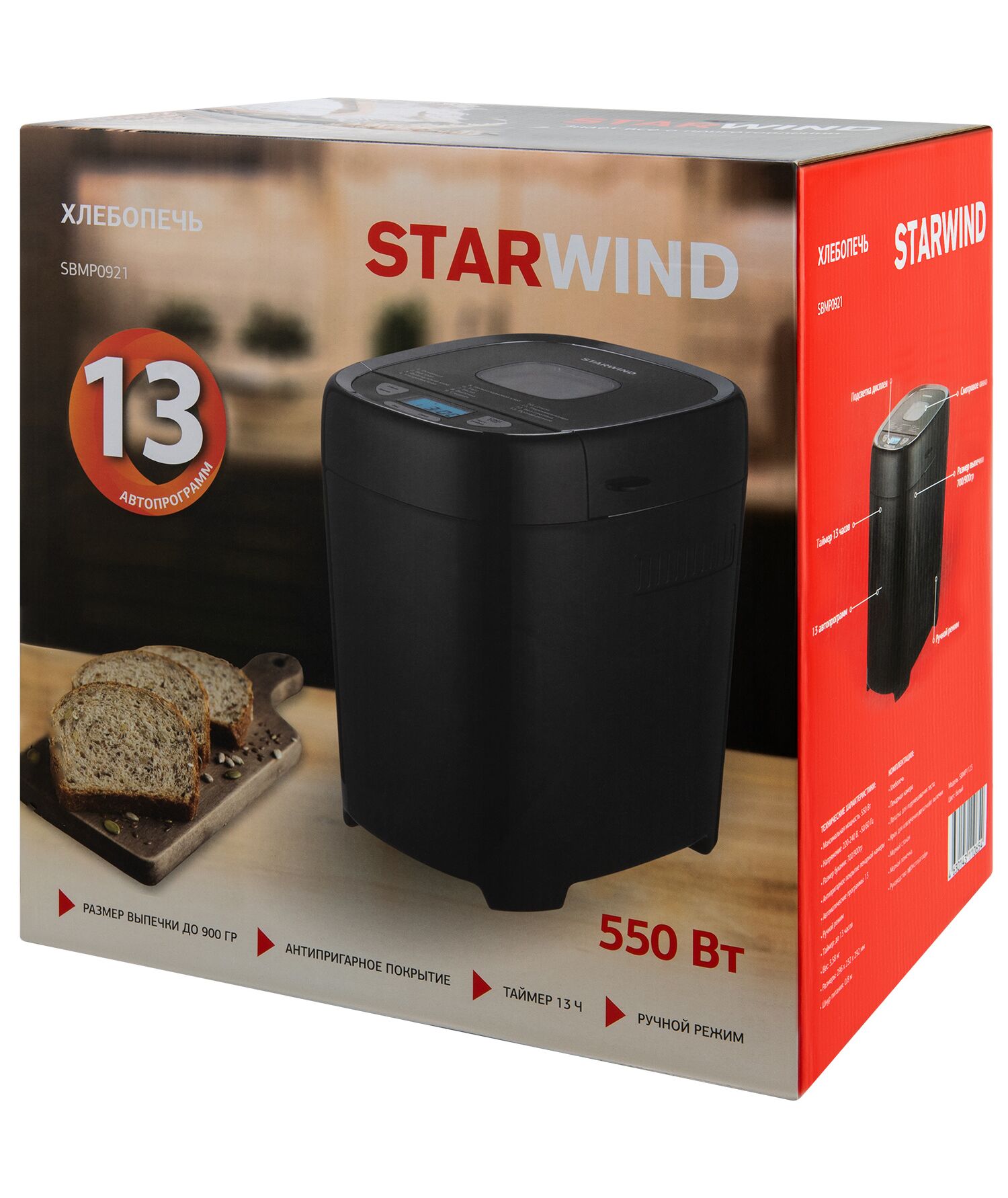 Хлебопечь STARWIND SBMP0921 550Вт черный