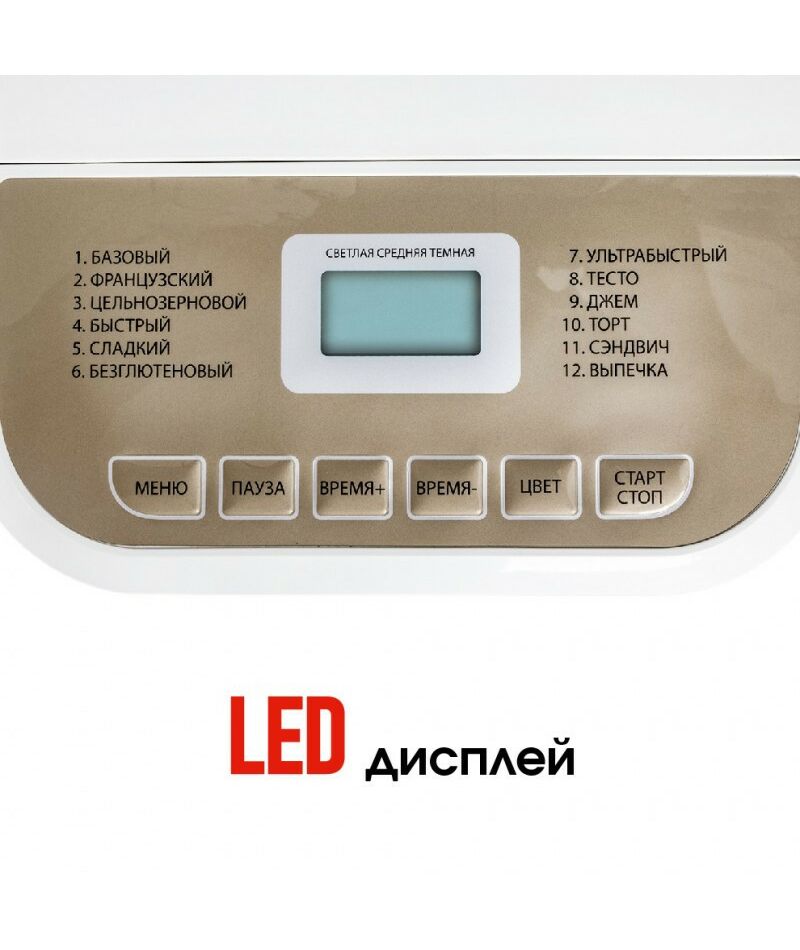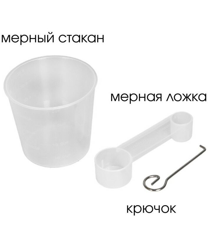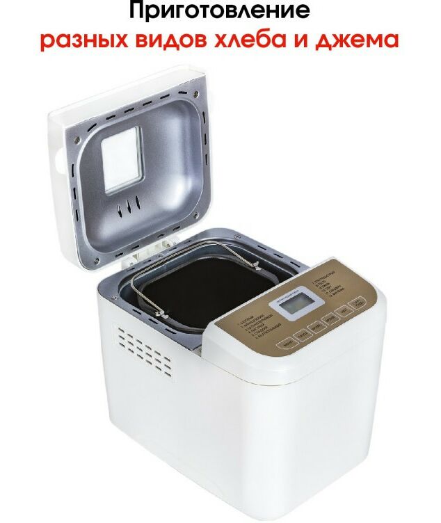 - Хлебопечь, крючок, мерный стакан, ложка, гарантийный талон, инструкция на русском языке