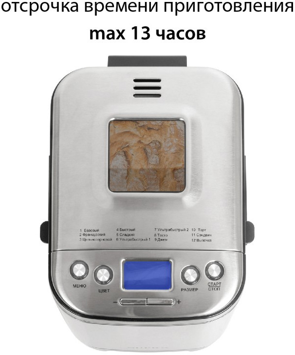 - Хлебопечь, крючок, мерный стакан, ложка, гарантийный талон, инструкция на русском языке