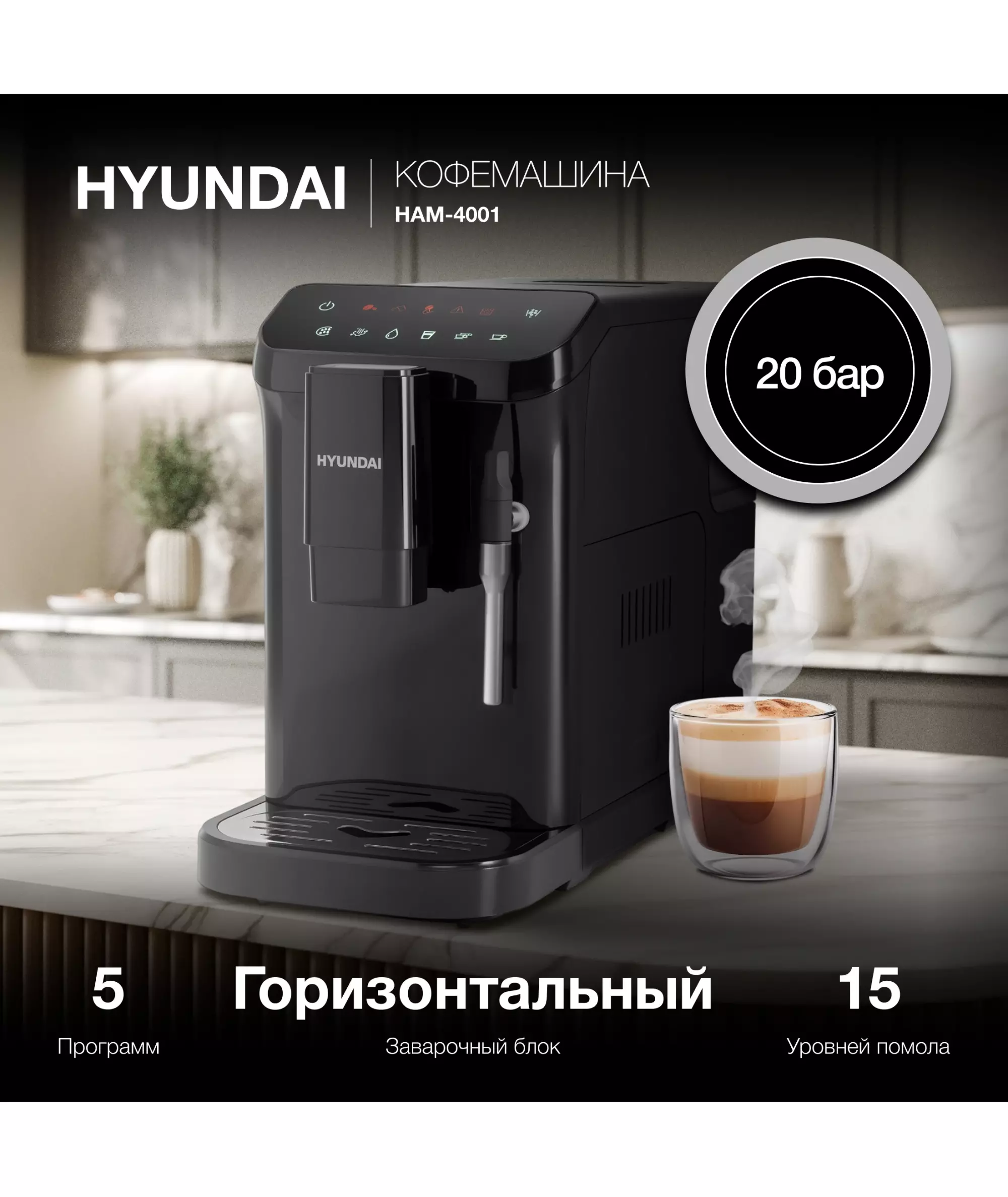Кофемашина Hyundai HAM-4001 1350Вт черный