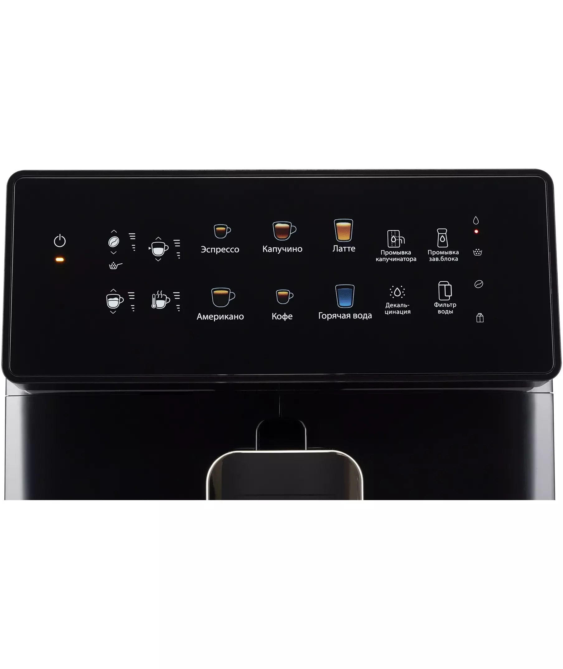 | Особенности | Прибор оснащен итальянской помпой фирмы ULKA с давлением 19 бар для максимального раскрытия вкуса любого сорта кофе. Для измельчения зерен в устройстве имеется профессиональная коническая кофемолка с контейнером на 200г и 9 степенями помола. |