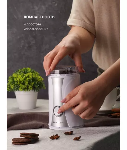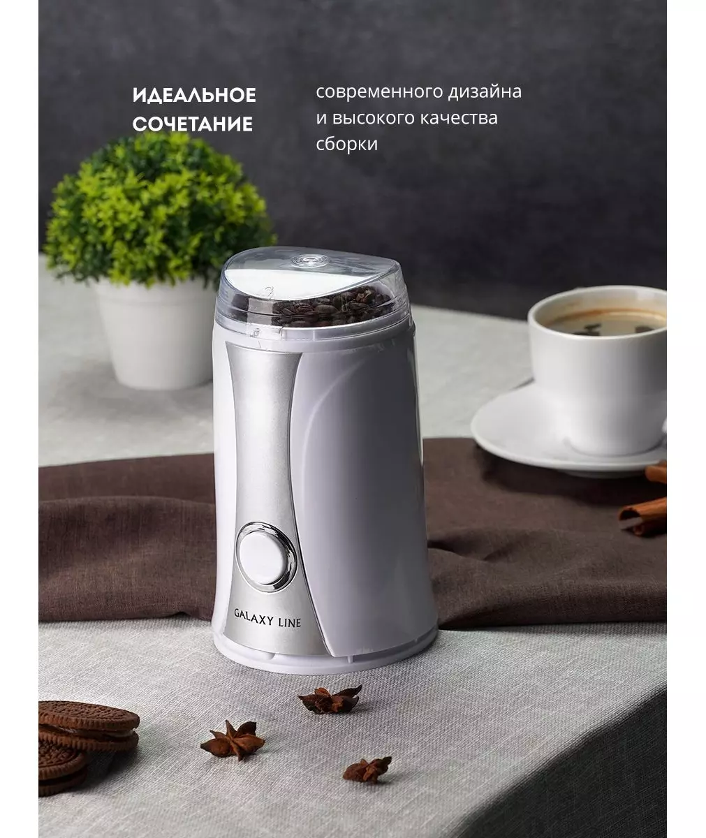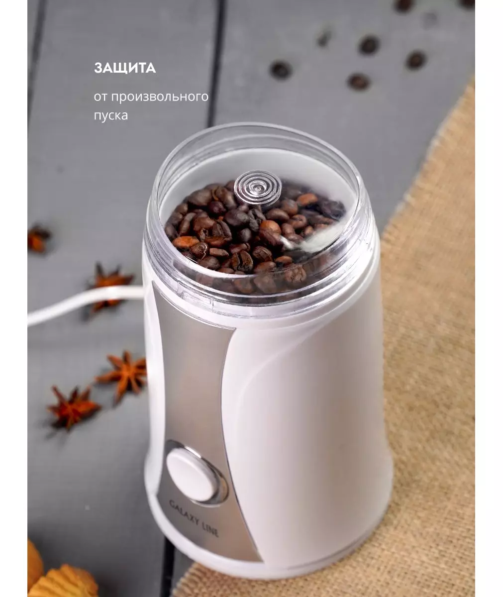 Кофемолка Galaxy Line GL 0905 250Вт сист.помол.: ротац.нож вместим.: 65гр белый [ГЛ0905Л]