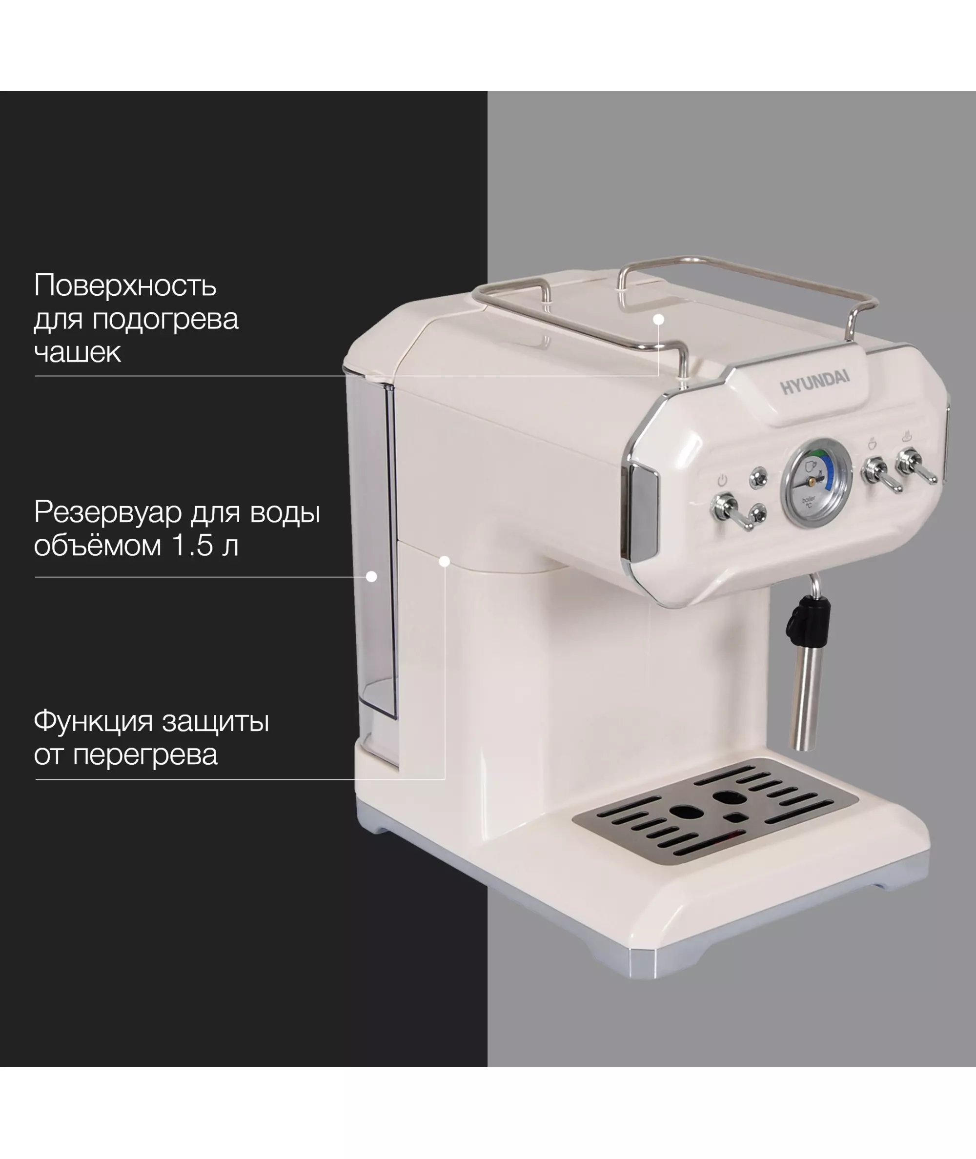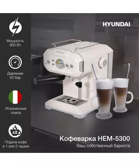 Кофеварка рожковая Hyundai HEM-5300 850Вт бежевый/серебристый