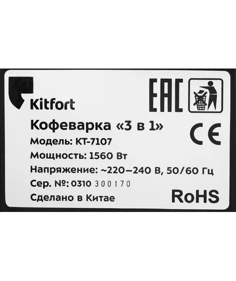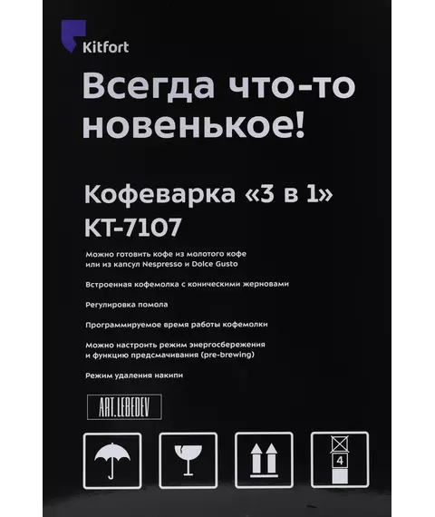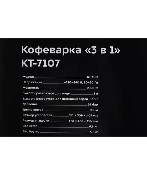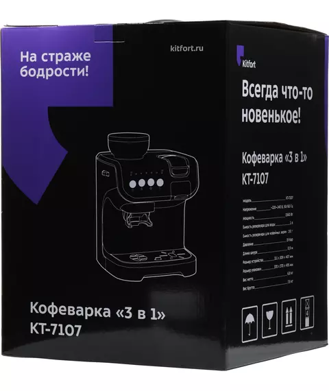 Кофеварка Kitfort КТ-7107 рожковая 1560Вт черный/серебристый